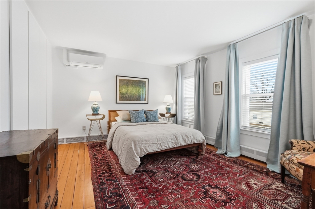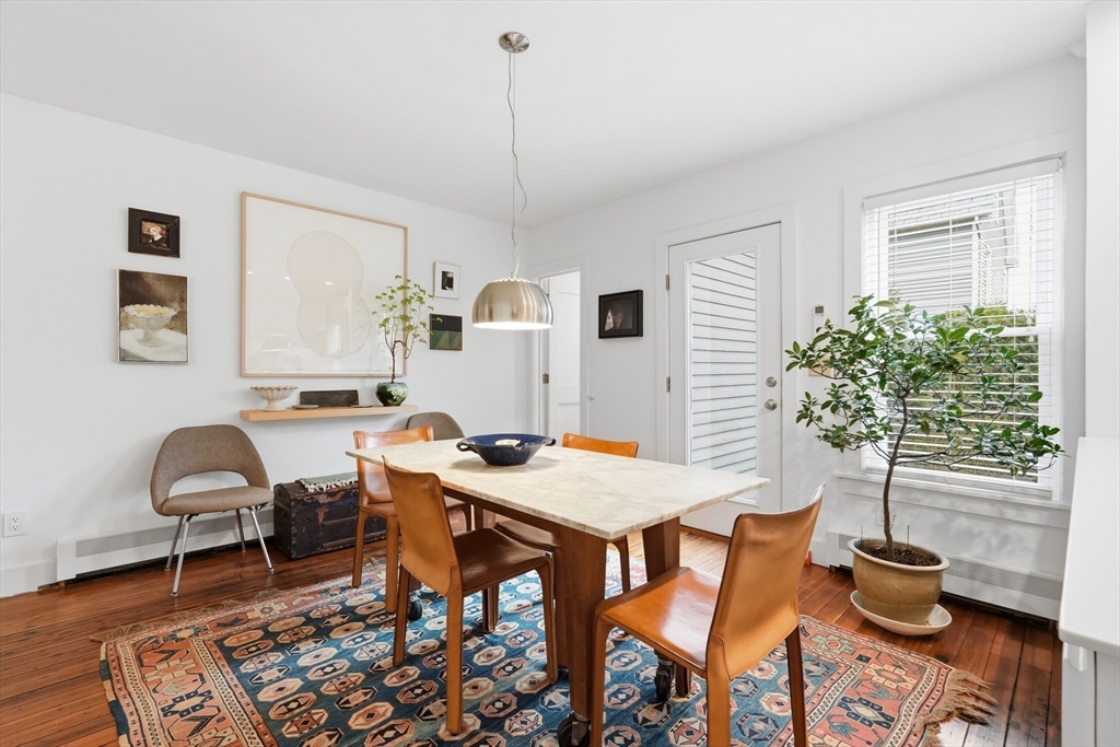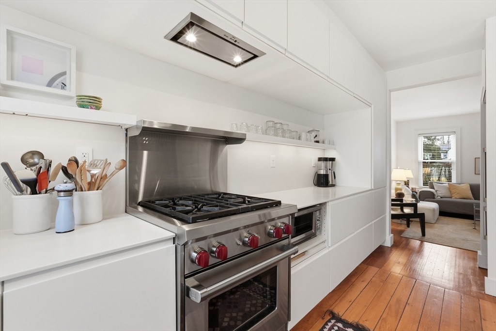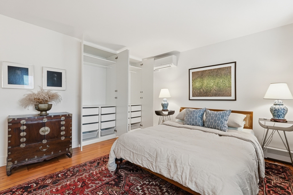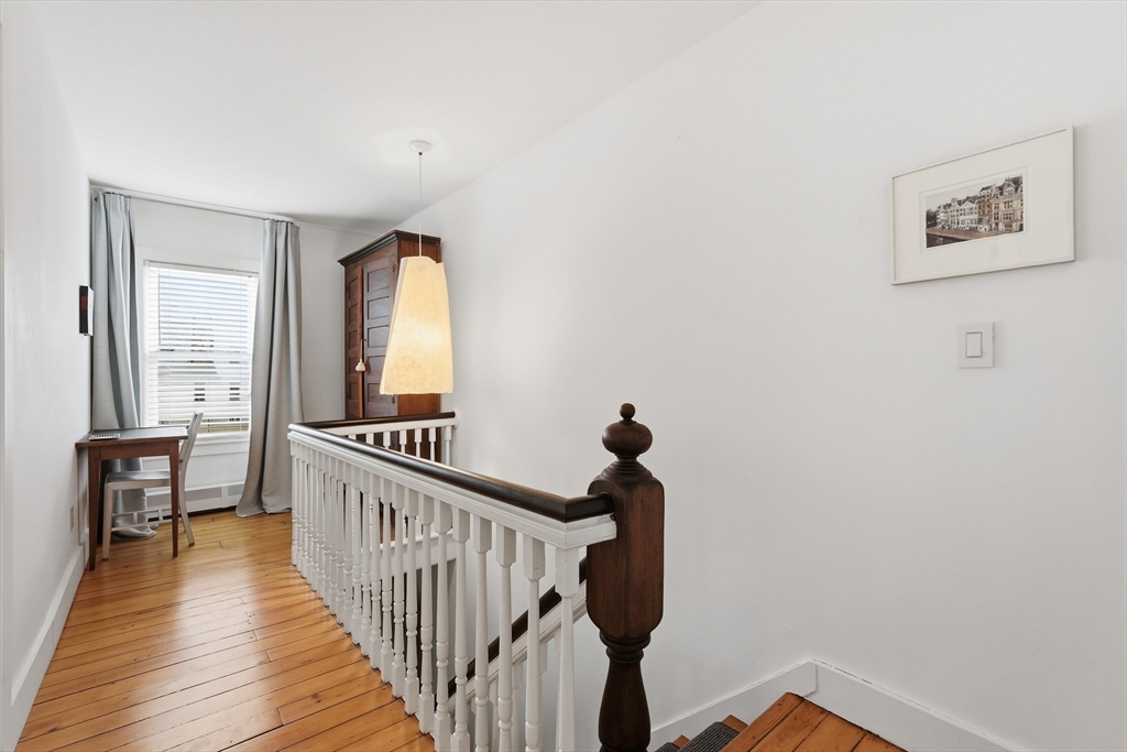 This elegant condo seamlessly incorporates turn of the century details with modern updates and Scandinavian style! Completely renovated in 2017, the gorgeous wood floors flow throughout. The star of the main floor is the open kitchen and dining area. Highlighted with sleek Corian countertops, this chef's kitchen boasts a Wolf stove and European cabinetry providing an abundance of storage. The open floorplan extends into the dining room with stylish lighting and floor to ceiling cabinetry. A perfectly placed powder room rounds out the first floor. Up the gracious staircase you'll find more hardwoods and a nook at the end of the staircase that is a lovely spot for a desk or reading chair. The primary bedroom includes more of the amazing built in closet cabinetry. A 2nd BR and a spa-like BA with floating vanity and large soaking tub complete this floor. Updates include all new windows, ductless minisplits and more. Located just steps from downtown, this one is not to be missed.