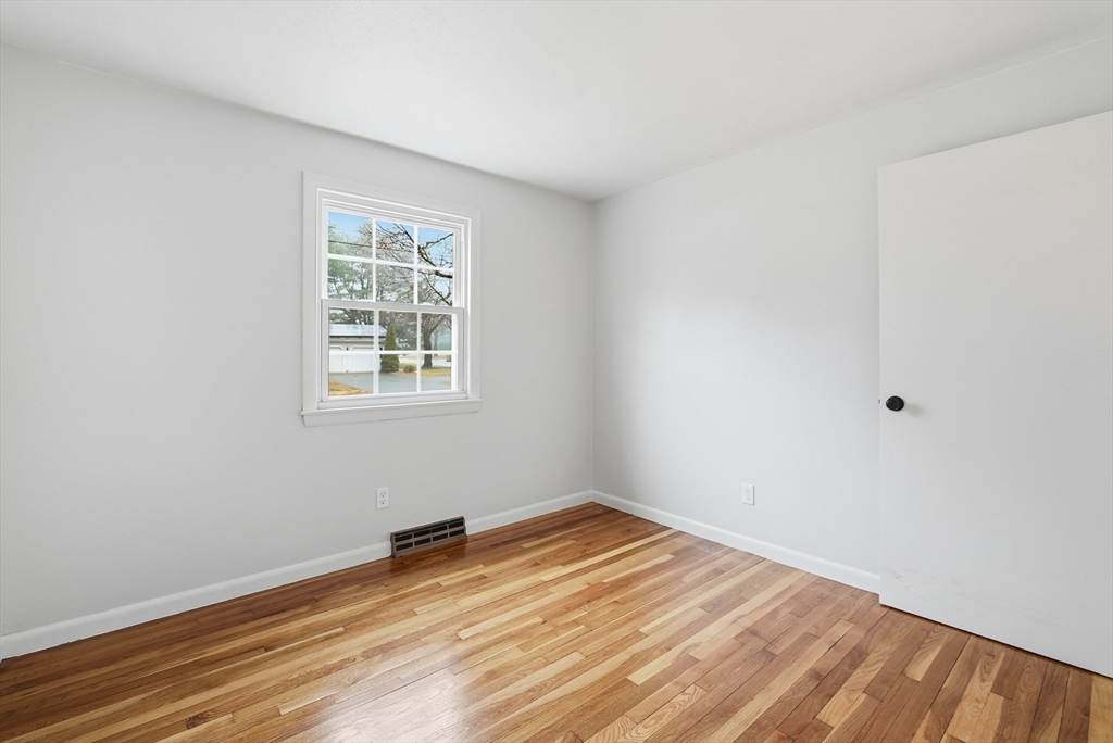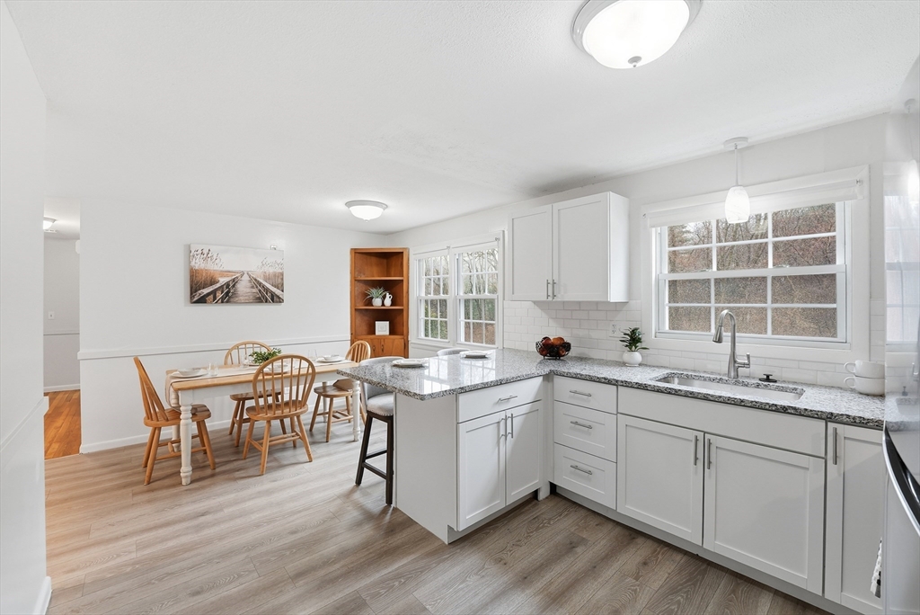 Move right in to this completely remodeled, three bedroom ranch. This home is located on a private cul-de-sac with a 1/3 acre abutting conservation land. Home has been well taken care of with newer gas heating system, new central air, new roof, insulated windows, new kitchen, new bath. Home includes stainless steel appliances, stove, refrigerator, microwave in Kitchen and a washer dryer in the basement. Granite counters with new cabinets in Kitchen. 3 bedrooms with refinished hardwood floors.