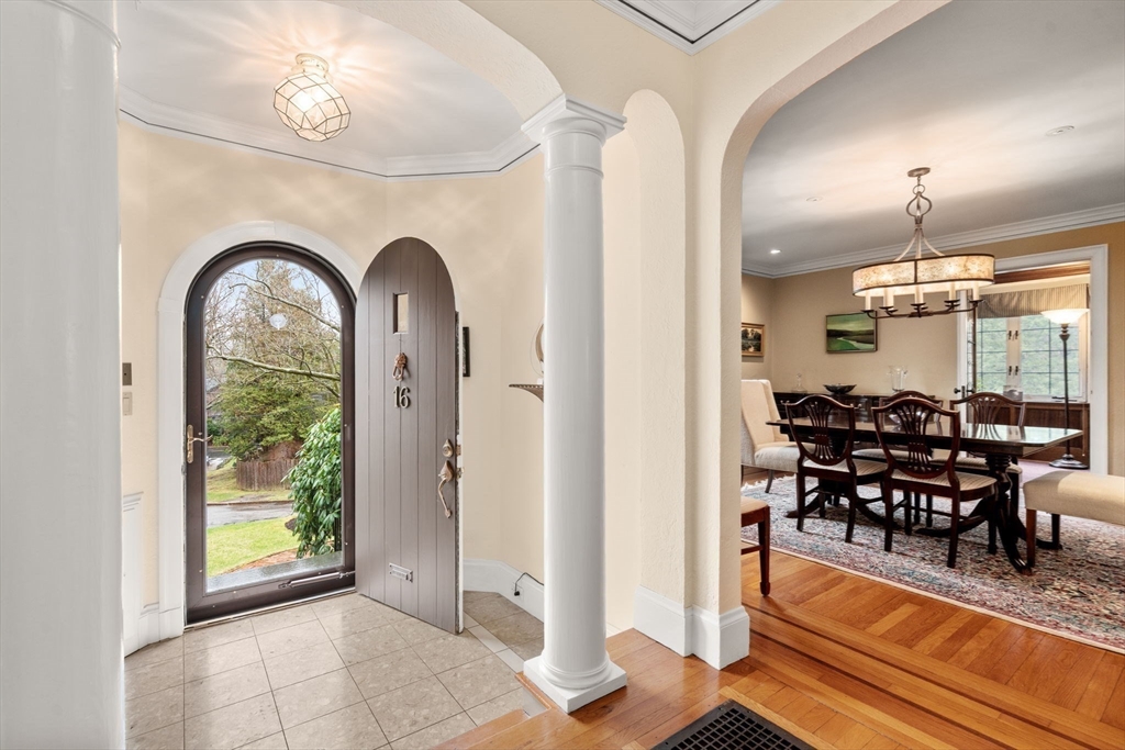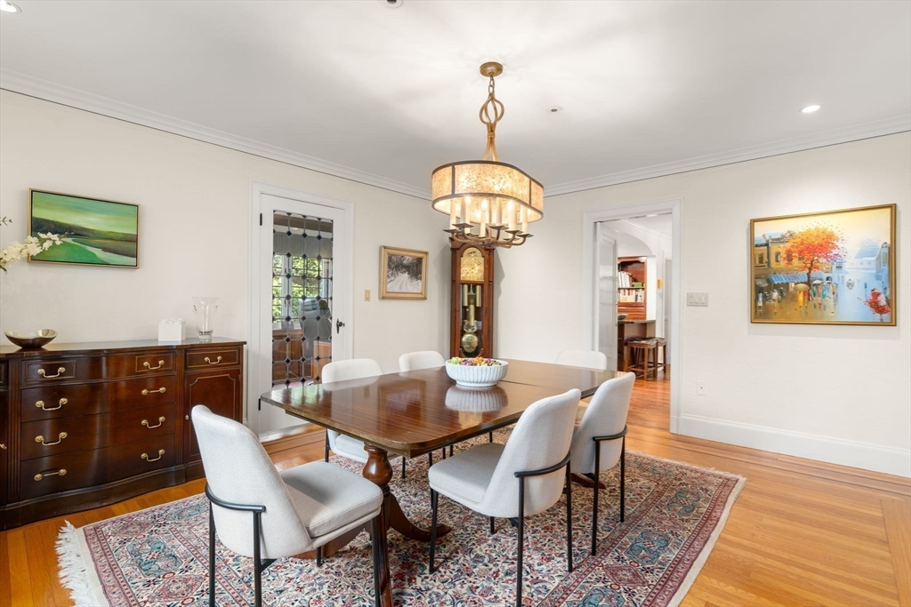 Nestled atop a gentle knoll on a tree-lined street, this English Tudor offers timeless elegance with thoughtful updates. Located minutes from Chestnut Hill shopping district & restaurants, this 5-bedroom, 5-bath home features a sun-filled step-down living room w/fireplace, a formal dining room, & oversized windows set the tone for gracious entertaining. Intricate crown moldings, inlaid hardwood floors, & soaring ceilings showcase the home’s exceptional craftsmanship. Recent updates include newly installed 4 zone HVAC system. The 1st floor also features a bright eat-in kitchen, family room, office and full bath. Upstairs, the primary suite includes an ensuite bath, walk-in closet &, two additional large bedrooms, full bathroom & a charming turret room. The 3rd floor adds two more bedrooms & full bath.The lower level includes a direct-entry 2-car garage, versatile family room w/kitchenette, exercise room, bath, & laundry. Baker School district. Enjoy a private yard with bluestone patio.