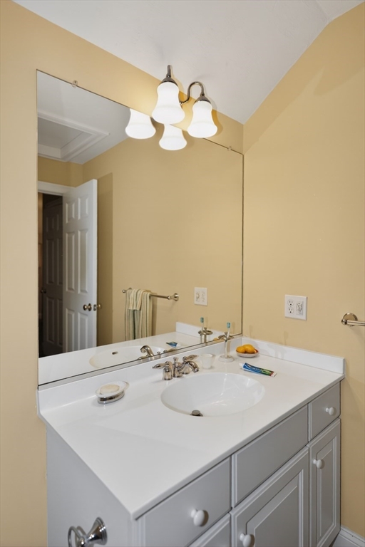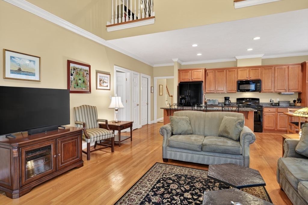 This lovely 55+ townhouse in Balancing Rock Village is ready for a new owner. Welcoming eat-in kitchen with granite counters, newer refrigerator and stove, pantry and breakfast bar open to vaulted ceiling living room with gas fireplace and slider out to fantastic wood deck. Separate formal dining room at front of the unit and hardwood floors through much of main level. First floor primary en suite with large walk in closet. Primary bath includes double vanity with Corian counter, tile floor, double wide shower and linen closet. Fantastic home office, convenient first floor laundry and powder room. Upstairs offers second bedroom with cozy carpet, closet and storage space as well as bonus loft space. Upstairs full bathroom with tile floor, Corian counter vanity and shower/bath. Great opportunity for expansion and/or storage in the lower level as well as two car garage. Newer water heater and roof heating coils. Convenient to shopping, restaurants and 495! Do not miss this great unit!