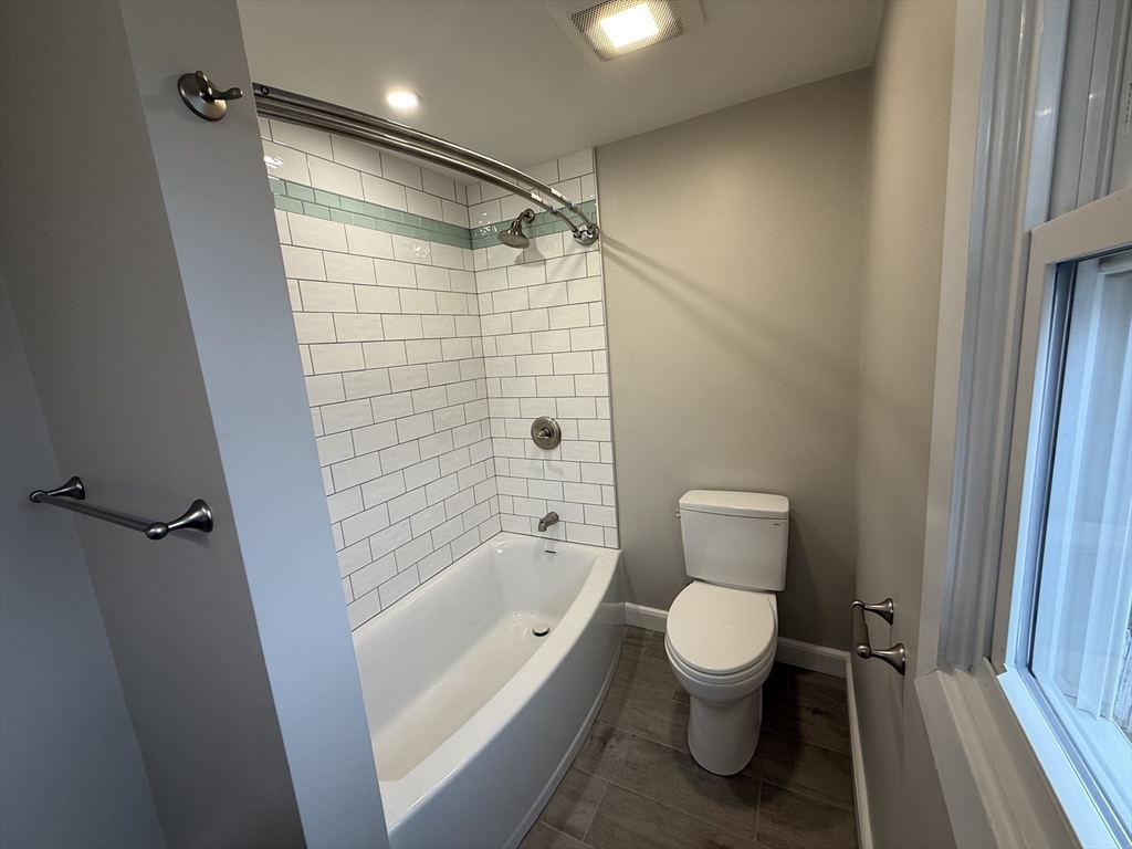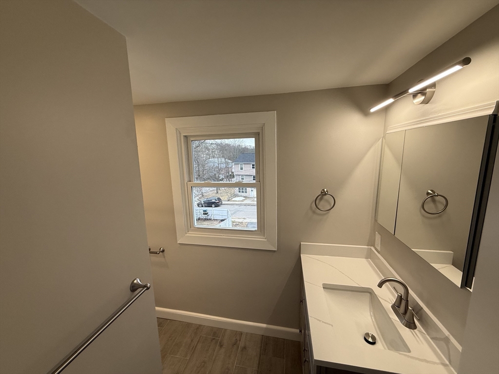Completely renovated 3 bed, 1.5 bath townhouse-style apartment with 1-car garage, located on a quiet Hyde Park/Dedham line cul-de-sac. This unit features a beautifully designed modern kitchen with shaker cabinets, granite countertops, stainless steel appliances, subway tile backsplash, and a tall pantry cabinet maximizing storage. LED lighting throughout, including recessed lighting in the kitchen and living areas, with flush mount fixtures in bedrooms and additional spaces. Open-concept living and dining area with beautifully refinished hardwood floors. Updated bathrooms with clean, modern finishes, including full bath with tiled shower and half bath on main level for convenience. Three spacious bedrooms with ample closet space. New replacement windows throughout. Gas heat, updated systems, and washer/dryer hookup. Off-street parking plus garage. Close to MBTA, parks, shopping, and major routes.