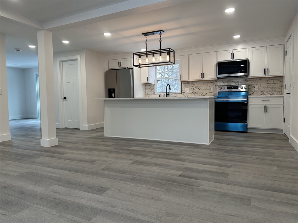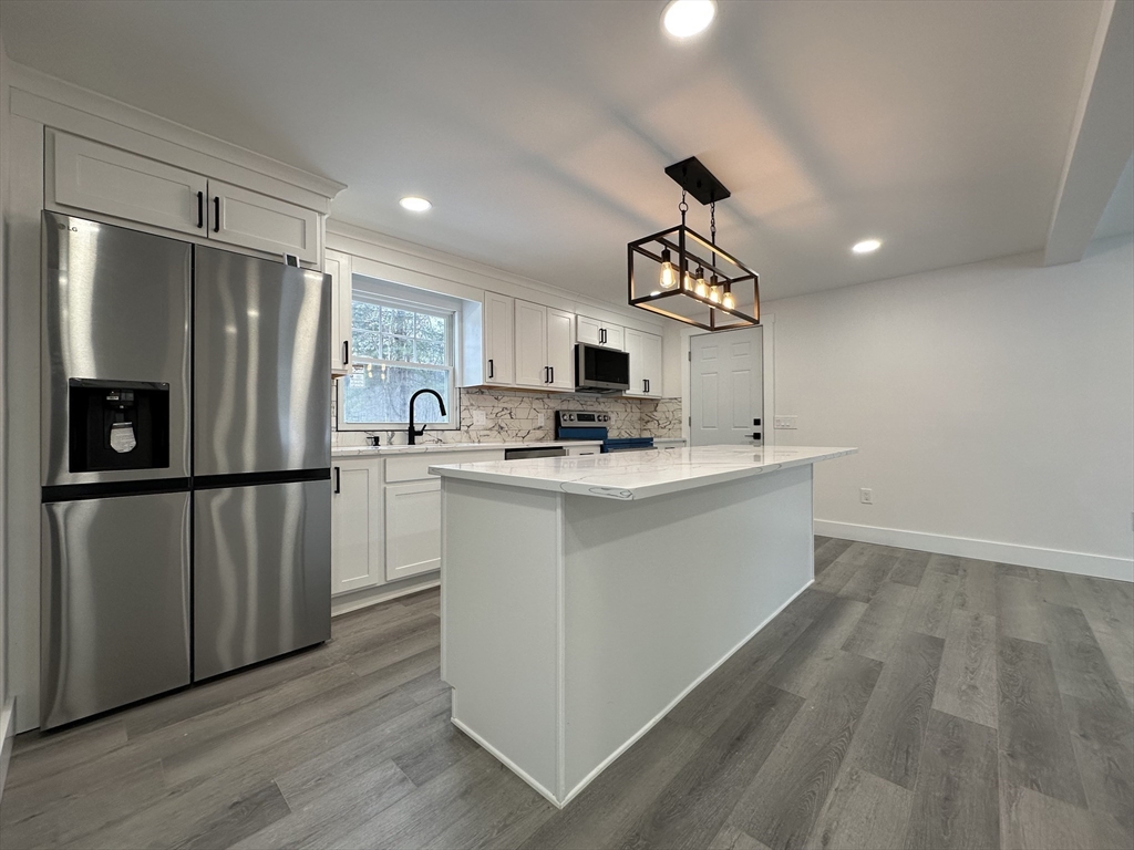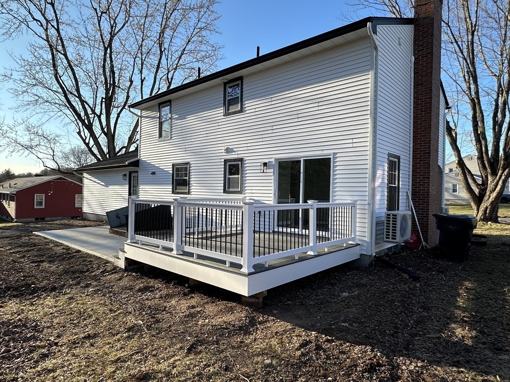 Welcome to 65 Hendom Drive—a beautifully remodeled colonial in Feeding Hills. Located just minutes from the center of town, this home offers convenient access to shopping, dining, and major highways. The exterior features great curb appeal with an updated façade, a brand-new, concrete driveway, and a Trex deck with patio—perfect for indoor/outdoor living. Inside, the open-concept layout includes an oversized living room that flows seamlessly into a stunning kitchen with a large island, granite countertops, updated cabinetry, and stainless steel appliances. A separate dining room with access to the deck and a half bath complete the first floor. Upstairs, the primary suite offers a beautiful bathroom and a walk-in closet. Two additional bedrooms and a full bath complete the second floor. Recent upgrades include LVP flooring, renovated kitchen and baths, and updated systems such as HVAC, electrical panel, and hot water tank. Don’t miss the opportunity to make this turn-key home yours