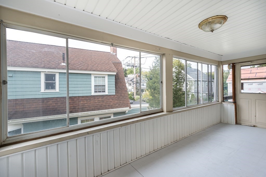 Bright 3-bedroom apartment in a well-maintained two-family home in East Arlington near Mass Ave! The unit features two large bedrooms on the second floor and a third bedroom on the upper level. Hardwood floors run throughout the living room, dining room, and bedrooms.The kitchen was updated about 4 years ago and features granite countertops, stainless steel appliances. A newer laundry set is located in basement. The bathroom was also updated one year ago. The dining room includes a classic built-in china cabinet and flows into a spacious living room. Additional highlights include:1 garage parking space + 2 driveway spaces,Corner lot with fenced yard,Enclosed sunroom.Fantastic commuter location just one block from Mass Ave, walking distance to Alewife station , close to restaurants, shops, and the Capitol Theatre, and minutes from the Minuteman Bikeway. Easy access to bus routes #77,#79, and #350.