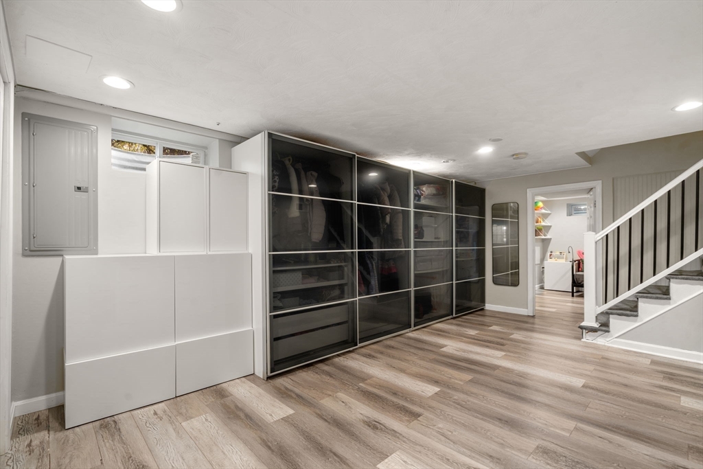 This beautifully updated & sun-filled Colonial offers the perfect blend of suburban comfort & modern convenience. The renovated open-concept kitchen features a center island with quartz countertops, stainless steel appliances & an eat-in breakfast nook, & flows seamlessly into the dining room. The main level includes a full bath & a living room w/ a fireplace and access to the deck & fabulous yard. Upstairs offers 4 bedrooms & 2 full baths, including a primary suite with en-suite bath. The walk out basement provides flexible space for a playroom, office, or gym, w/ garage access & lots of additional storage. Outdoor living area shines with a full-width deck complete with built-in entertaining area, wraparound brick patio, & beautifully landscaped grounds. Close to Elliot T stop, shopping, & all major routes. Extensive updates include newer windows, updated kitchen & bathrooms, newer HVAC system, tankless water heater, finished basement, deck, patio, irrigation, landscape & hardscape.