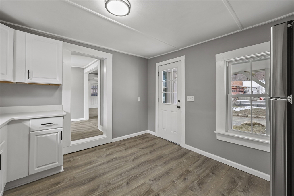 This beautiful home is ready for its new owner. On the first floor you will find a gorgeous kitchen, tastefully renovated with quartz countertops and new stainless steel appliances; updated bathroom, living room, dining room, laundry area and a bedroom. You will love the new lifeproof flooring! Upstairs there are two cozy bedrooms with new carpeting and views of the Hoosac River which is directly in front of the home. The property has a new roof and it's served by town water and sewer. There is forced air natural gas heat and hot water, vinyl siding and vinyl replacement windows. Two porches complete this great home! On the left the porch is open and features an exterior storage area, while on the right there is a large enclosed porch, which is a great 3-season room.This home sits on a private dead-end street, however, it is located within walking distance to restaurants, school, stores and many downtown attractions in the beautiful town of Adams!