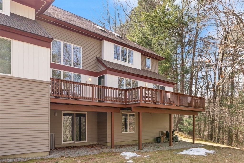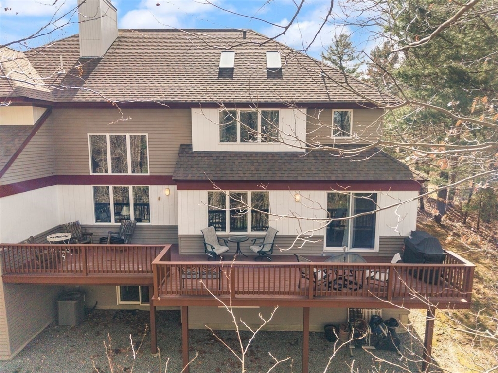 NOT YOUR TYPICAL CONDO - Luxury Finishes, Large Rooms, Lots of Sunlight and over 3100 sq ft. EXQUISITE End Unit at Macintosh Farm w/ one of the BEST locations - Private and Serene Setting with Huge Deck. BREATHTAKING 2 STORY 19' X 17' GREAT ROOM with SOARING CEILINGS, SKYLIGHTS and 2 LEVELS OF WINDOWS abutting lovely Dining Room which opens to LARGE Deck. FABULOUS KITCHEN w/ Stainless Steel Appliances, Undercabinet Lighting and HUGE DINING AREA. 1st floor also includes 1/2 bath and access to 2 car garage. LOTS OF HARDWOOD & RECESSED LIGHTING. 2nd Floor includes PRIMARY SUITE with Cathedral Ceiling and Skylights includes 10' Walk-In-Closet and FABULOUS SPA BATHROOM with Large Tiled Shower and Jacuzzi Tub. The second Bedroom is also spacious w/ large closet. Addl. Full Bath. Good-Sized Loft and Laundry Area complete the 2nd floor. Recently Finished WALK-OUT Lower Level w/ 21'x18' Family Room & Bonus Room/Office. COUNTRY CLUB LIVING w/ Pool, Tennis & Clubhouse. LOTS OF UPDATES.