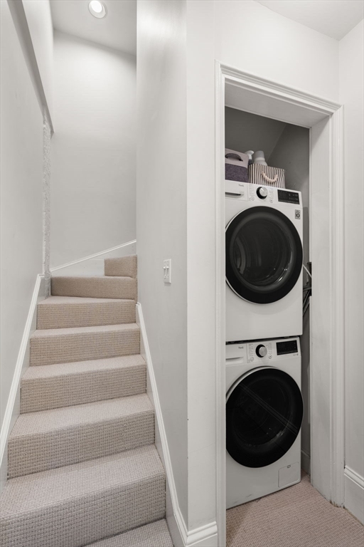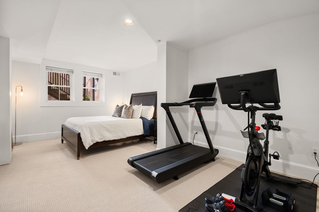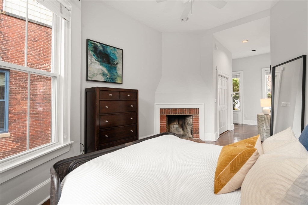 This sun-filled 2 bed 2 bath townhome is part of the historically acclaimed Francis B. Austin House, offering a unique triplex blending modern updates with timeless charm in an unbeatable location. Enjoy the convenience of a dedicated parking space just outside your door! The first floor features a spacious primary bedroom with fireplace, renovated en-suite bath and office nook. The upper level showcases an impressive open-concept living area with multiple skylights and soaring ceilings. The kitchen and living space flow seamlessly together and include a bar area, fireplace and direct access to a private deck with city views. The renovated kitchen features quartz countertops, stainless steel appliances, glass-tile backsplash and a large center island. The lower level offers an oversized bedroom, renovated full bath and a versatile bonus space for a gym, office or nursery. Additional features include central A/C, recessed lights, EcoBee WiFi thermostat and LG ThinQ washer/dryer.
