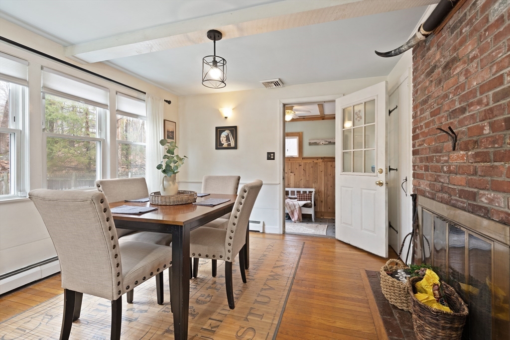 Welcome to this charming 3-bedroom, 2-bath ranch in Chelmsford offering comfortable single-level living on a private .92-acre lot. Built in 1968, this home features 1,292 sq ft of living space with hardwood flooring, a bright living area with fireplace, and a functional six-room layout. Recent improvements include fresh interior paint and a refreshed bathroom, giving the home a clean, move-in-ready feel. The open-concept kitchen filled with natural light creates an inviting space for everyday living and entertaining. Central air and natural gas hydronic-air heat provide year-round comfort. A partially finished basement offers excellent storage and future expansion potential. Outside, enjoy the spacious fenced-in backyard, perfect for gatherings. Conveniently located near shopping, restaurants, and major commuter routes. Roof less than a year old!