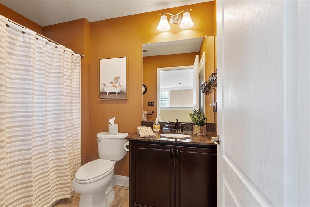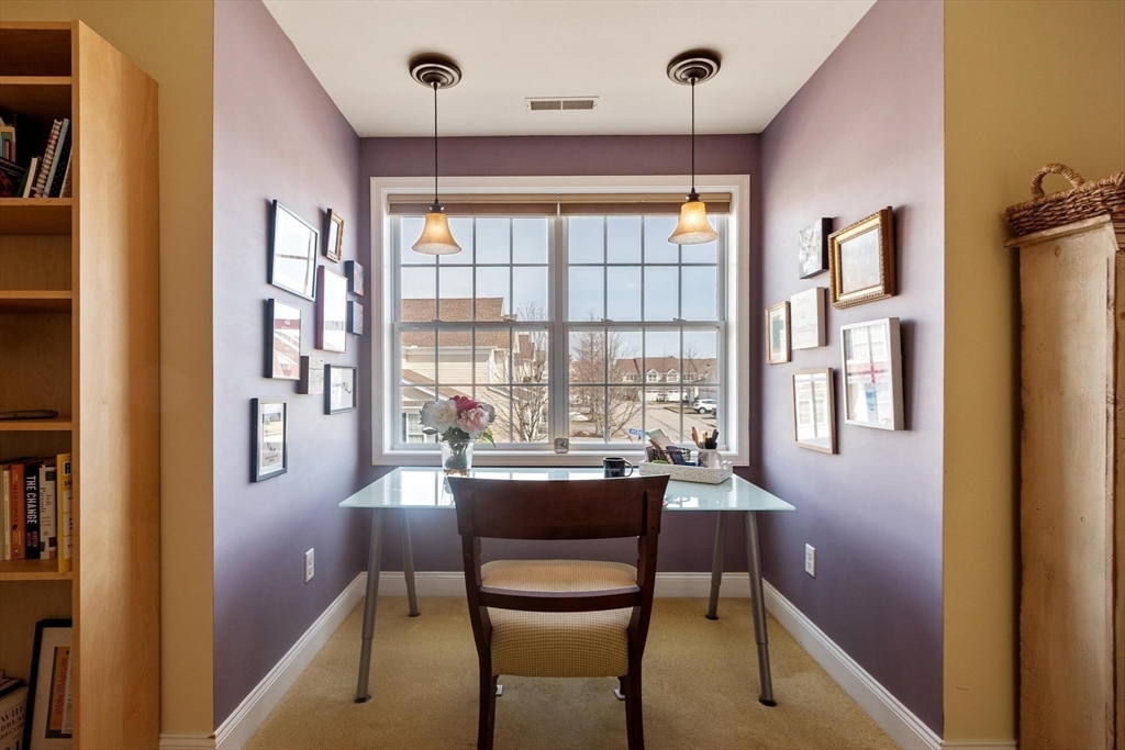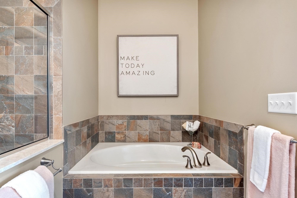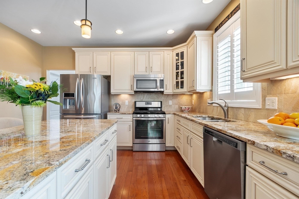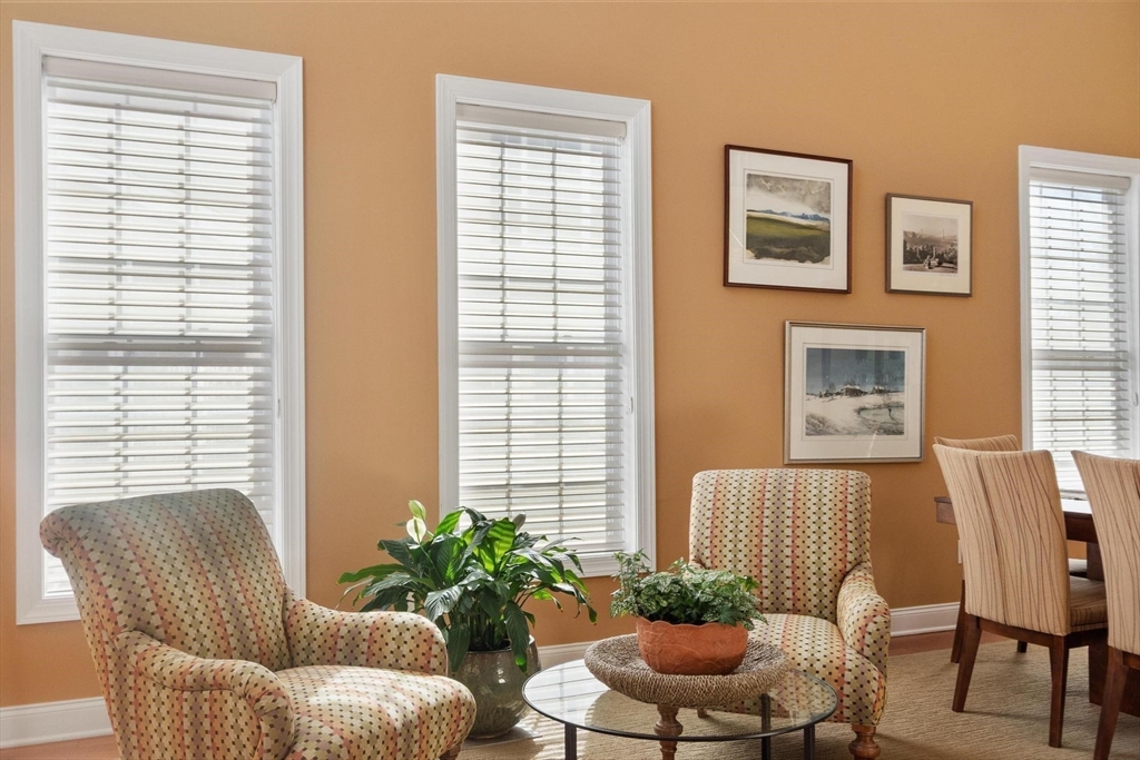 Sun-filled end-unit townhome in desirable Regency at Assabet Ridge (over 55) close to major routes, shopping, restaurants, rail-trail, new library and much more ! The front foyer with custom French doors welcomes you into the LR/DR with a dramatic 20' ceiling, gleaming H/W floors and windows galore with custom window treatments. The upgraded kitchen offers cream cabinets and granite on countertops and island. The sun-splashed family room features a gas fireplace, vaulted ceiling, H/W floors and custom window shutters. The lovely main floor bedroom includes a handsome tiled ensuite with soaking tub, shower and walk-in closet. Laundry area,half bath and direct entry to 2 -car garage complete the main floor. Upstairs are 2 additional carpeted sunny bedrooms both with walk-in closets. The open loft area is ideal for an office area. Large unfinished walk-out basement offers great storage or finishing potential. The deck overlooks a private, wooded area. A gem in a wonderful community !