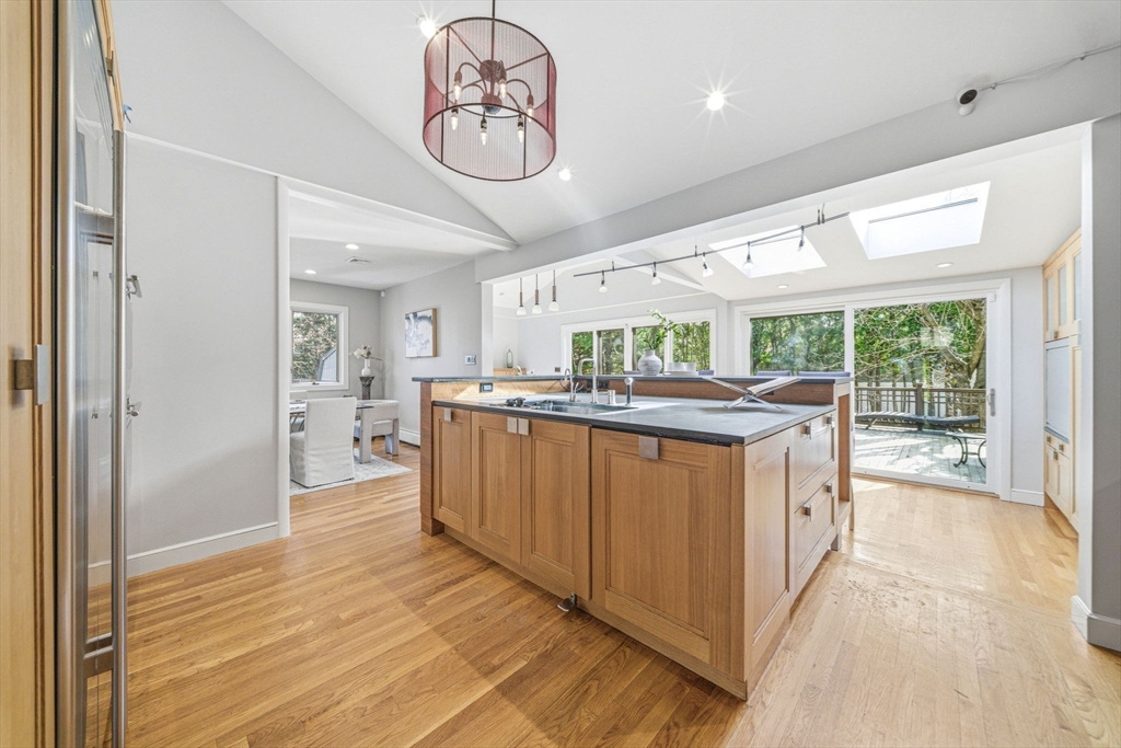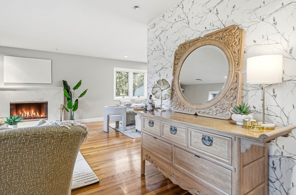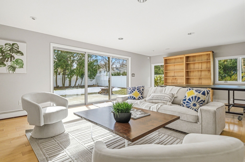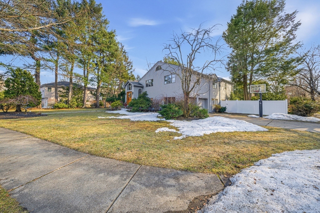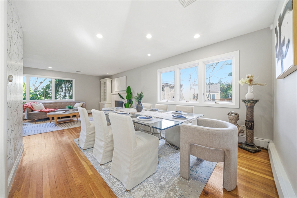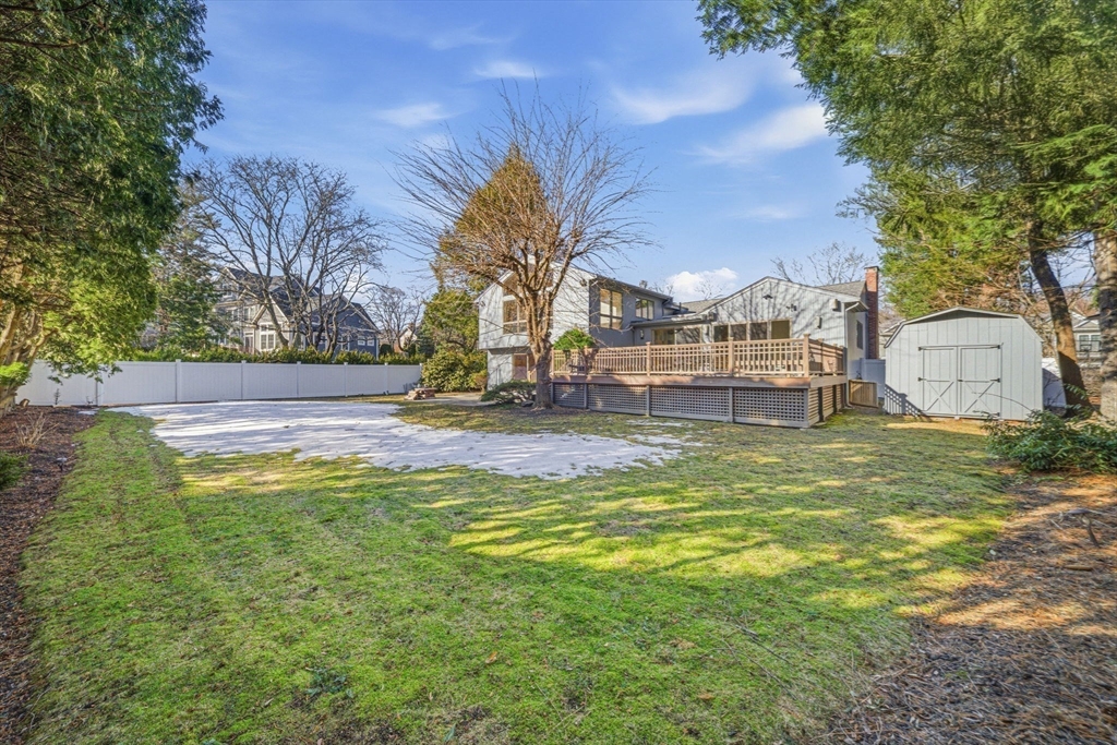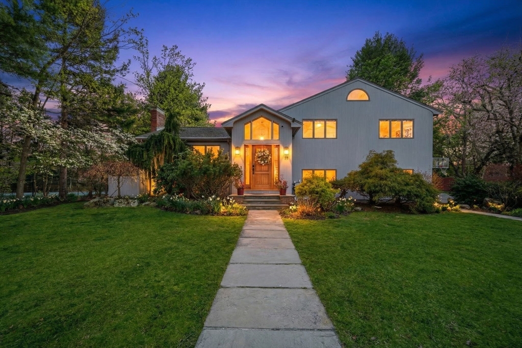 Nestled in sought-after Waban Village, this 1955 Contemporary-style home offers a blend of comfort and functionality, featuring an inviting foyer that opens to a sunlit living room with fireplace, a spacious dining room, and an updated eat-in kitchen with an oversized island and bright breakfast area with French doors leading to a deck overlooking a beautifully landscaped 15,136 sq ft lot with garden and patio; a few steps down is a generous family room along with an office, full bath, mudroom, and access to the attached two-car garage; the second floor offers four bedrooms including a high-ceiling primary suite with walk-in closet and en-suite bath, filled with natural light and an open, airy feel; the finished lower level includes a playroom with fireplace plus laundry, storage, and utility space; major systems updated; conveniently located near Angier School, public transportation, and The Windsor Club.