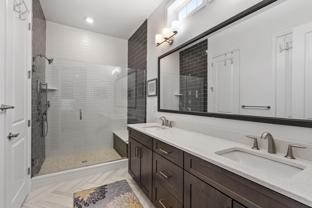 Welcome to 6 Jameson Drive at Regency Glen Ellen. This Exceptional residence is loaded with upgrades including premium appliances, cabinetry, countertops, designer lighting, gorgeous flooring throughout, Smart Home wired and immersive Surround sound throughout. The Stunning Open-Concept Kitchen commands the home with a Grand Center Island and flows seamlessly into the dining area and great room w/ soaring ceilings, fireplace, and walls of windows for abundant natural light. Step outside to your private deck—perfect for morning coffee or evening dining. The first-floor primary suite showcases a walk-in closet, double vanity en-suite & custom walk-in shower. Main level includes a private office w/ French doors, second bedroom, full bath, & laundry w/sink. Upstairs reveals a spacious loft, third bedroom & full bath, while the finished lower level delivers exceptional extra living space & full bath. Resort Style Living w/Outdoor Heated Pool,Tennis Courts,Pickleball,Bocce & Walking trails.