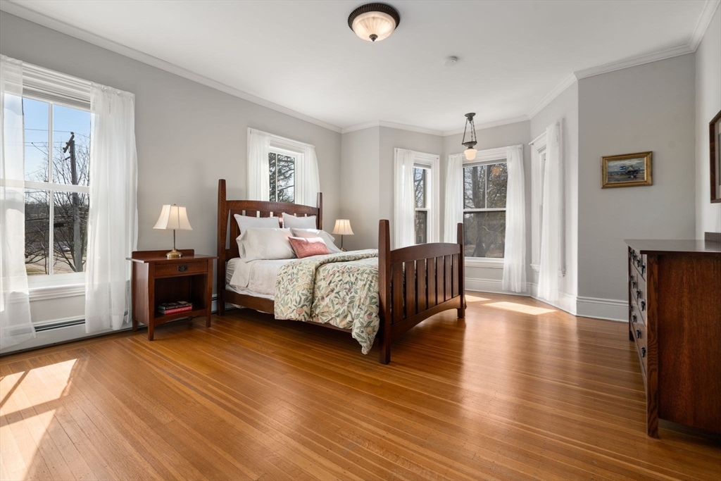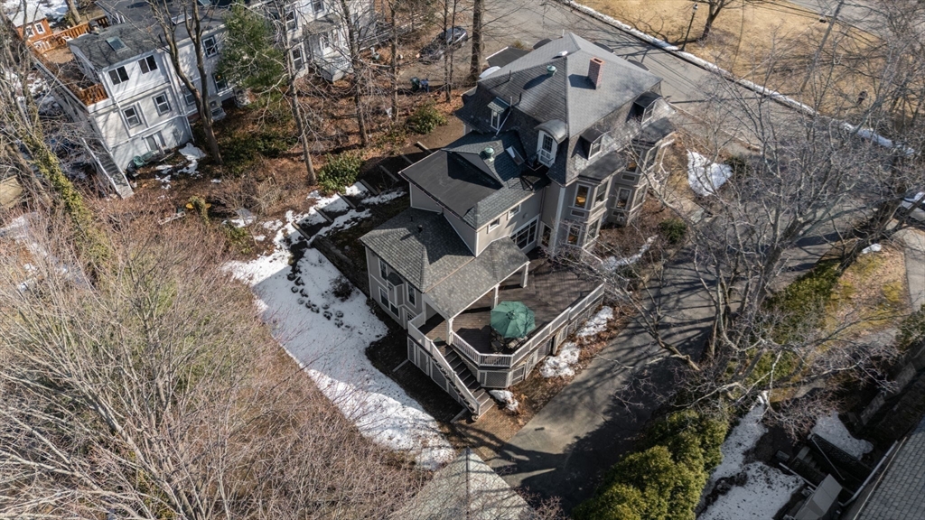 Beautiful Mansard Victorian on a gaslit, tree-lined street in one of Newton’s most picturesque neighborhoods. This stately Second Empire home blends historic character with thoughtful modern updates, including an architect-led renovation that restored the original façade and period details. A welcoming front porch leads to an inviting foyer with mudroom. The first floor features a fireplaced living room with bay windows, formal dining room with built-in china cabinet and crown moldings, and a center-island kitchen with stainless appliances that opens to a sun-filled breakfast area with wet bar and a comfortable family room with gas fireplace. Deck overlooking the manicured yard and detached two-car garage. Second floor offers four bedrooms including a primary suite and laundry. Third floor with two bedrooms, full bath and kitchenette ideal for guests or in-law space. Finished walk-out lower level. Walk to schools, Newtonville shops, restaurants and commuter rail. A must see!