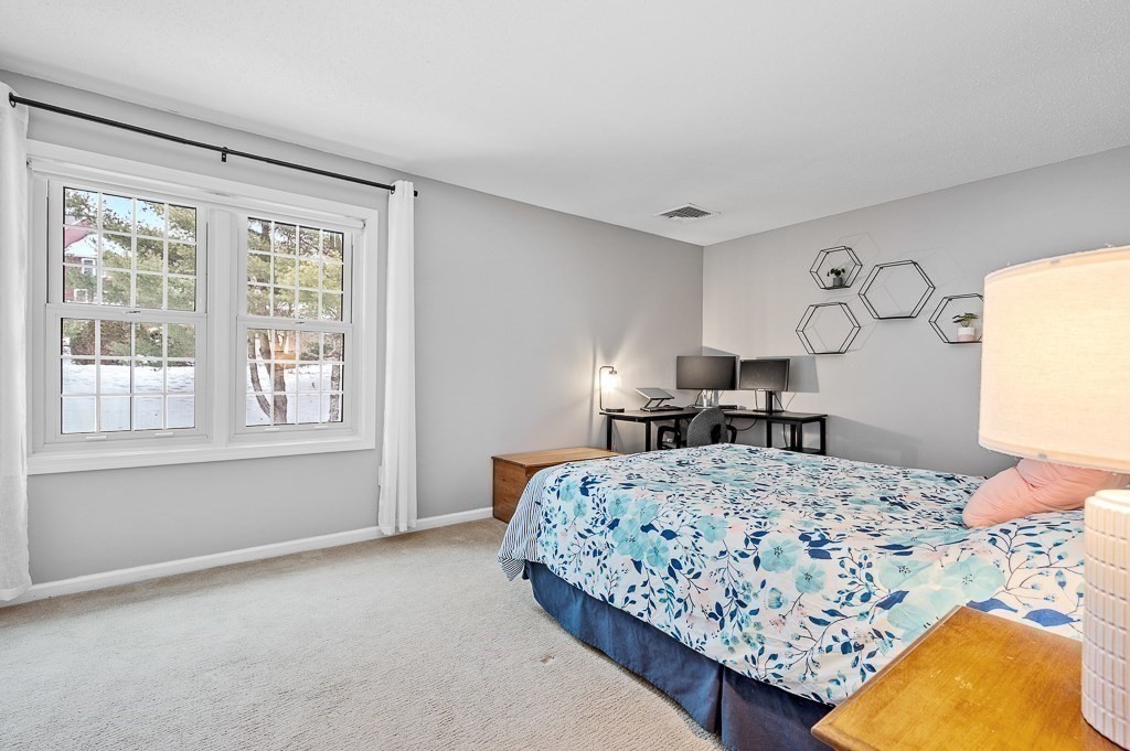 Make it home in Laurelwood! This well-maintained 2-bedroom townhome offers comfortable, low-maintenance living at a fantastic value. The first level features a cabinet-packed kitchen with granite counters, updated subway tile backsplash, and a breakfast nook that can also serve as a work-from-home space. The spacious living room with fireplace opens to a deck where you can soak up the sun and take in peaceful, wooded views. Upstairs, you’ll find two large bedrooms, including a stylish master bedroom with serene views of the woods plus a double-vanity, dual-access full bath. Enjoy the benefits of a recent heat pump (2023), new Harvey slider (2025) central A/C, large closets for "all the things". The walkout lower level offers great storage and future potential for additional finished space. Pet-friendly (dogs must be 50# or less) and move-in ready! Conveniently located near Hopedale Country Club, UMass Medical, and the ever-popular Hopedale Pond for outdoor recreation activities.