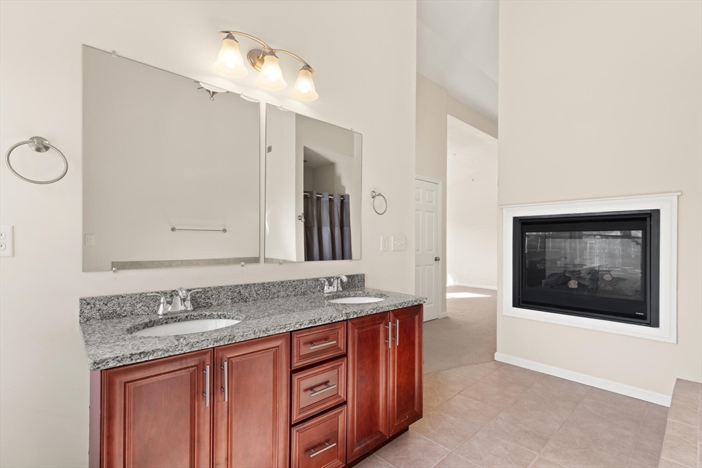 Designed with contemporary flair, this 2 BR home features an open floor plan that creates a bright and inviting living space perfect for relaxing or entertaining. The center-island kitchen is equipped with stainless steel appliances and flows seamlessly into the dining and living area with fireplace.Upstairs, the spacious primary suite features soaring ceilings and a stunning see-through fireplace that leads into a luxurious bathroom complete with a soaking tub and separate shower. The second bedroom offers its own private en-suite bath, making it ideal for guests or family.The lower level offers room for future expansion, laundry, and two-car tandem garage.
