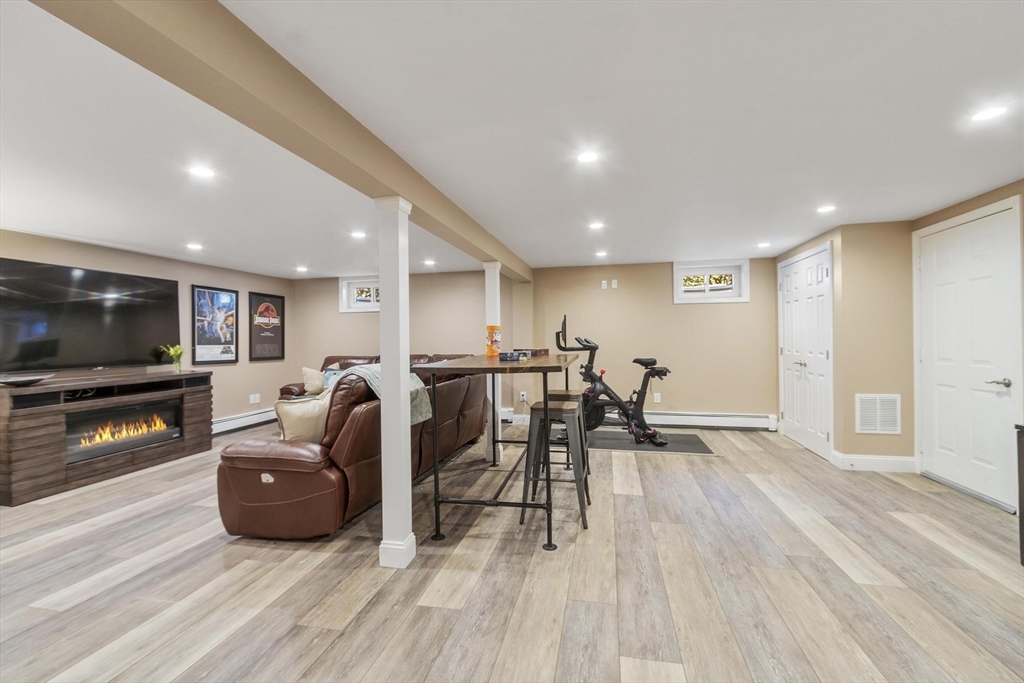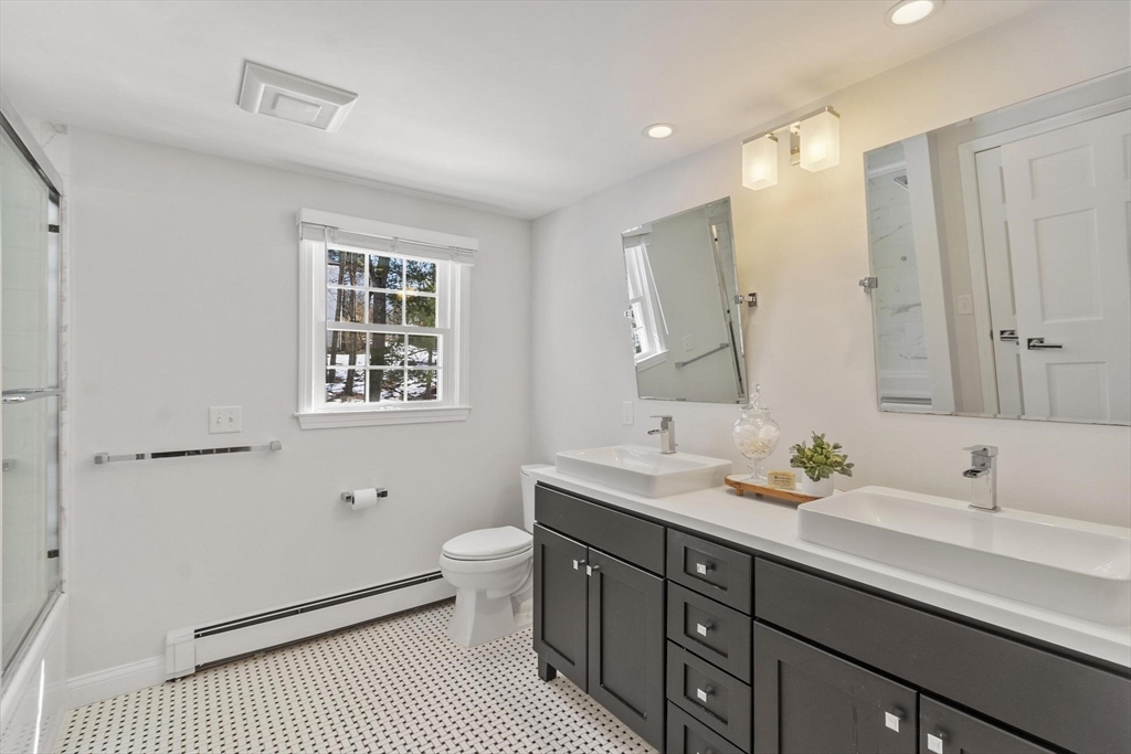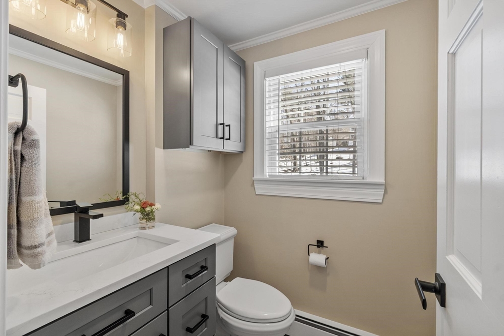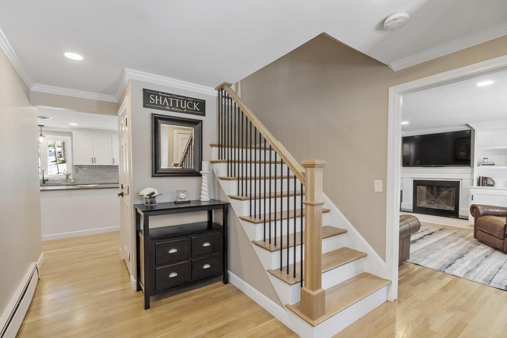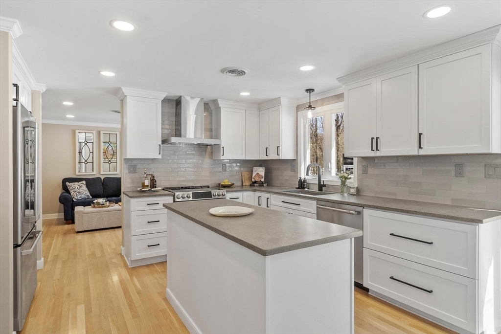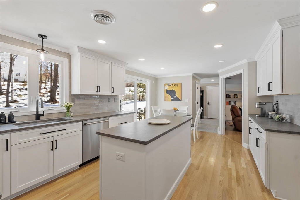This home checks every box! Beautifully renovated, meticulously maintained, large 1 acre level private lot, cul-de-sac neighborhood & a great commuter location- nothing to do but move in! The minute you enter this bright, sunny space you will know you are home. The quartz & stainless eat-in kitchen w/center island is the heart of the home with sliders that open to your private fenced-in backyard & patio- the perfect place for entertaining family & friends. Steps away is the family room w/fireplace & built-ins, dining room & living room. A 1/2 bath and mudroom complete this level. Upstairs you will find a lg. primary w/walk in closet & private bath, 3 add'l bedrooms & a full bath. The large finished lower level w/wet bar and 1/2 bath is a great flexible space that can be used as a media/playroom, workout area or both! 2 car garage, hardwood floors, central air and so many updates make this a home you don't want to miss!