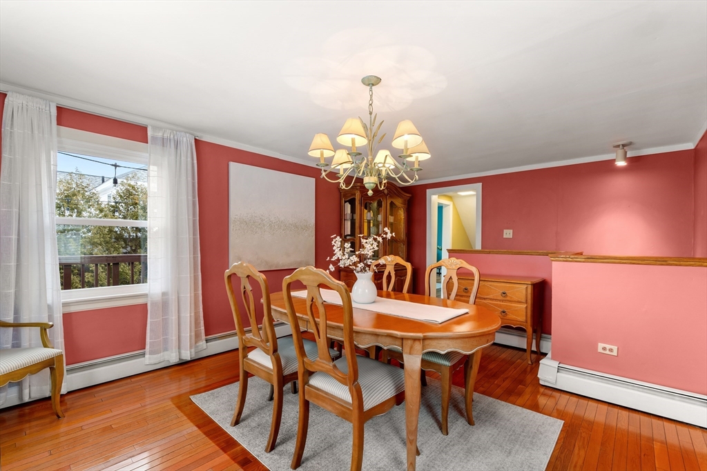 Welcome to Andover! This charming home sits on a quiet side street in a desirable in-town neighborhood, so close to downtown restaurants, coffee shops, and local conveniences. The first floor features a welcoming foyer, updated eat-in kitchen with white cabinets, stainless steel appliances and recessed lighting, a bright living room that opens to a spacious deck where you'll be able to watch the most amazing sunsets, a small side room, perfect as a den or a place to work, a formal dining room overlooking the backyard, and a 1/2 bath. Just below the dining room, the family room adds flexible, finished living space with direct access to the backyard, while additional finished space is in the main basement - tucked away and perfect for teen hangout or office. Upstairs are three bedrooms and a full bath, including a sun filled primary bedroom with double closets. So many updates, great natural light, high ceilings, and friendly neighbors. THIS is the perfect blend of comfort and location!