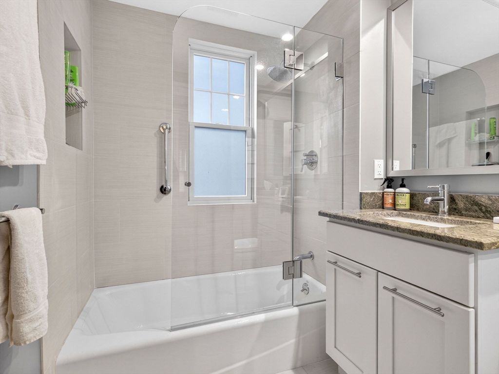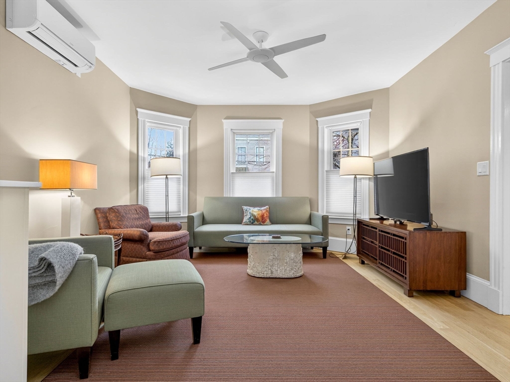 Situated on a tree-lined side street in an incredible Cambridge location, is this renovated 2 bed, 2 bath first, floor condo. Renovated and expanded in 2015, this condo boasts a blend of historic Cambridge charm and modern amenities. Improvements include a spacious primary suite with built-in shelving and cabinetry, a generously sized bathroom with heated floors, a double vanity and walk-in closet. Other noteworthy features include a nicely appointed kitchen, with pantry and in-unit laundry, renovated 2nd bathroom, also with heated floors, cooling (mini-splits), dining room with wine bar and built-in buffet and a sweet office nook. Recent improvements to common areas include major basement repointing and newer driveway with permeable pavers. All this and an exclusive use front porch, ample basement storage and off-street garage parking! With easy access to the Red Line T at both Harvard & Porter Squares, Universities, restaurants and shopping, this lovely home is a must see!