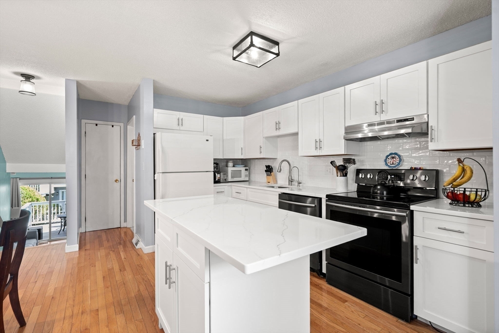 Welcome to this bright and cheery two bedroom, 1.5 bathroom townhouse located in sought after Pickman Park. This unit offers 1,682 square feet of living space spread out over four levels. The living room includes a pellet stove and a glass slider leading to a private deck. The large eat-in kitchen was recently updated and features white Shaker cabinets, white subway tile backsplash, and a custom island. There's also a pantry and half bath with laundry adjacent to the kitchen. The generously-sized bedrooms boast vaulted ceilings and have a spacious, airy feel. A garage and driveway provide parking for two cars and additional storage space. Amenities for this well-maintained, professionally managed property include a pool, clubhouse, tennis court, and landscaped grounds. Conveniently located near Salem State University, Salem Hospital, Forest River Conservation Area, and all the vibrant restaurants, specialty shops, and entertainment that downtown Salem has to offer.