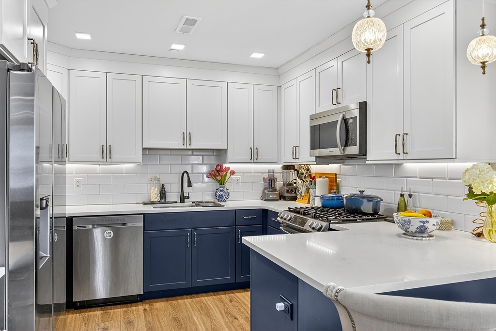 You'll love living in a neighborhood where everything is close by: public transportation, shops, cafes, pharmacies, dry cleaners, and everything you need for a convenient and comfortable life!This corner top floor unit is simply filled with sunshine and is perfectly designed for a modern lifestyle! Open layout, Spacious living room with a gas fireplace, Dining area that fits large dining table Perfect for friends and family gathering! An elegant open kitchen has plenty of cabinets, SS appliances, Quartz counter tops. Primary bedroom has double closet and private bath with walk-in shower. In unit Washer and Dryer. Unit comes with TWO full size parking spaces in the Heated Garage with an elevator access. High owner occupancy, low condo fee. Pets allowed. Walk to Bellevue or Highland Train Station, Trader Joe's, Roche Brothers, YMCA. Not a long ride to Longwood Medical Area. This property is a great match if you are looking to buy your first home or downsizing.
