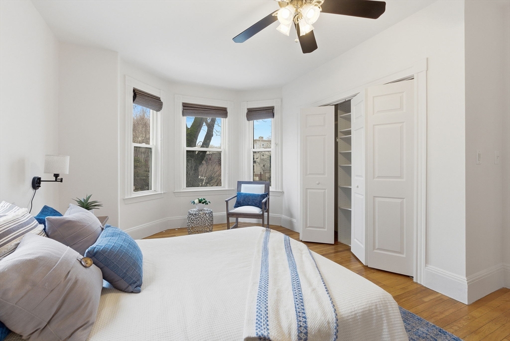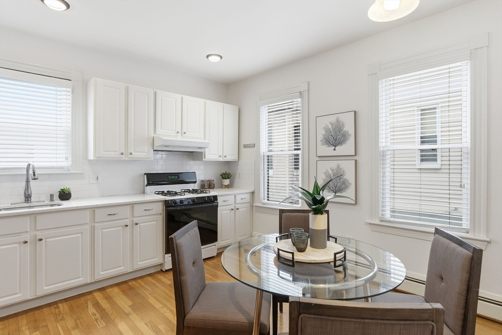 Four room 1+ BR unit in a classic six fam in East Somerville. Half mile to Assembly Row & Sullivan Sq Orange Line “T” station, 1 mile to Union Sq & the Green Line “T” station, 1.5 miles to Encore, & 2 miles to North Station. Bright 1st floor unit w/ South exp with high ceilings. Spacious LR and BR, updated eat-in kitchen, and a plus room off the LR separated by French doors. Can be a 2nd BR, an office, or expanded living space. Large EIK provides plenty of room for “two cooks in the kitchen”. White cabinets and appliances, granite countertops with a subway tile backsplash, recessed and pendant lighting, and there’s plenty of space for a kitchen table. Period details include hardwood flooring throughout, the previously mentioned high ceilings and French doors, and classic window and door casings with rosettes. Other features include parking in a private driveway (nice!), in-unit full sized stack laundry, and plenty of storage in the basement.