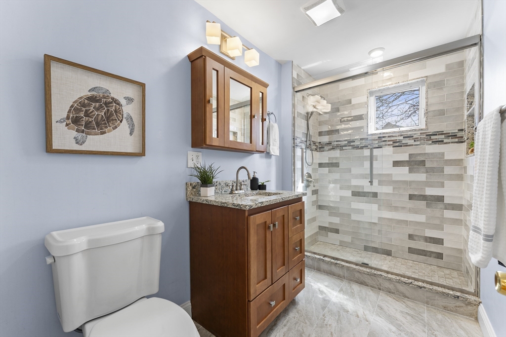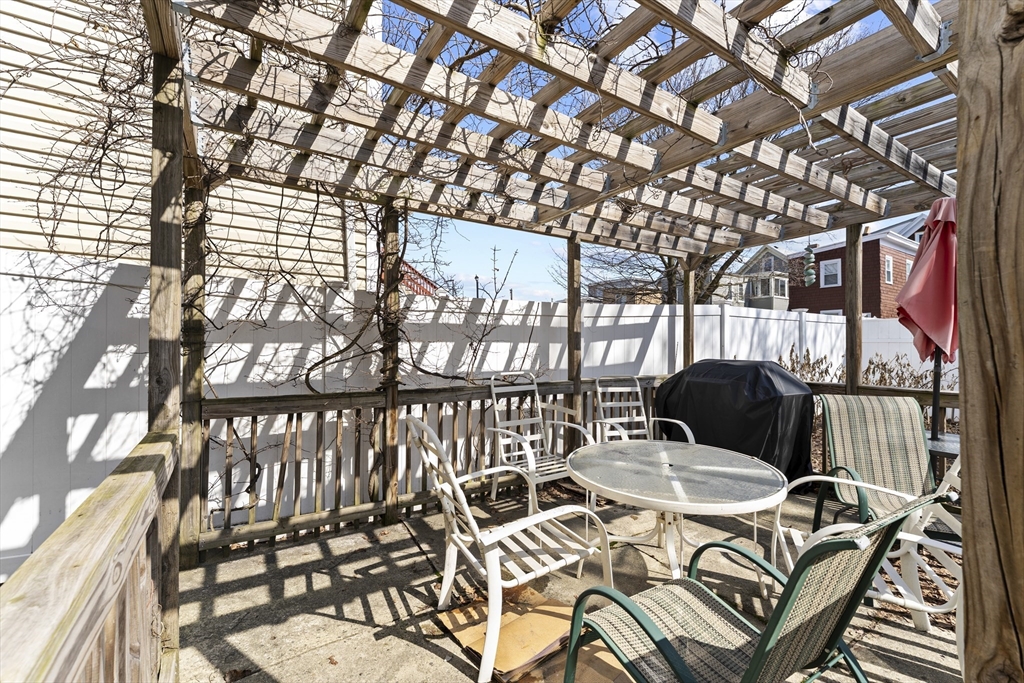 INCREDIBLE VALUE...PRISTINE BRICK 4 BEDROOM LESS THAN A HALF MILE TO THE ORANGE LINE AND A HALF MILE TO THE GREEN LINE WITH EXCLUSIVE USE 2-3 CAR DRIVEWAY...Fantastic condition with over 1700 sq ft on 2 levels. Great open floor plan perfect for entertaining....including a bonus 20 ft fireplace family room. Lovely Cherry Stained Wood Cabinet Kitchen with custom tile back splash, beautiful granite counters, plenty of cabinet space and all recent stainless appliances...plenty of room for a dining room table. Nice spacious bedrooms 15'x11', 15'x11', 14'x11' and 14'x10'... Hardwood floors. Updated modern baths...main bath has radiant heated floors. In Unit Laundry. Cozy back patio area with pergola perfect for those lazy summer afternoons with friends and family. Your own private 2-3 Car Driveway is a huge plus and a rare find! PARADISE LOCATION with a Walker's Paradise Walk Score of 91 and a Biker's Paradise Bike Score of 93. Five Minutes from Assembly Row.