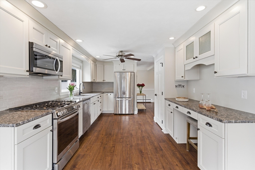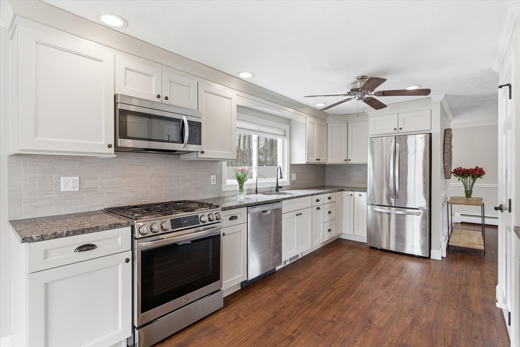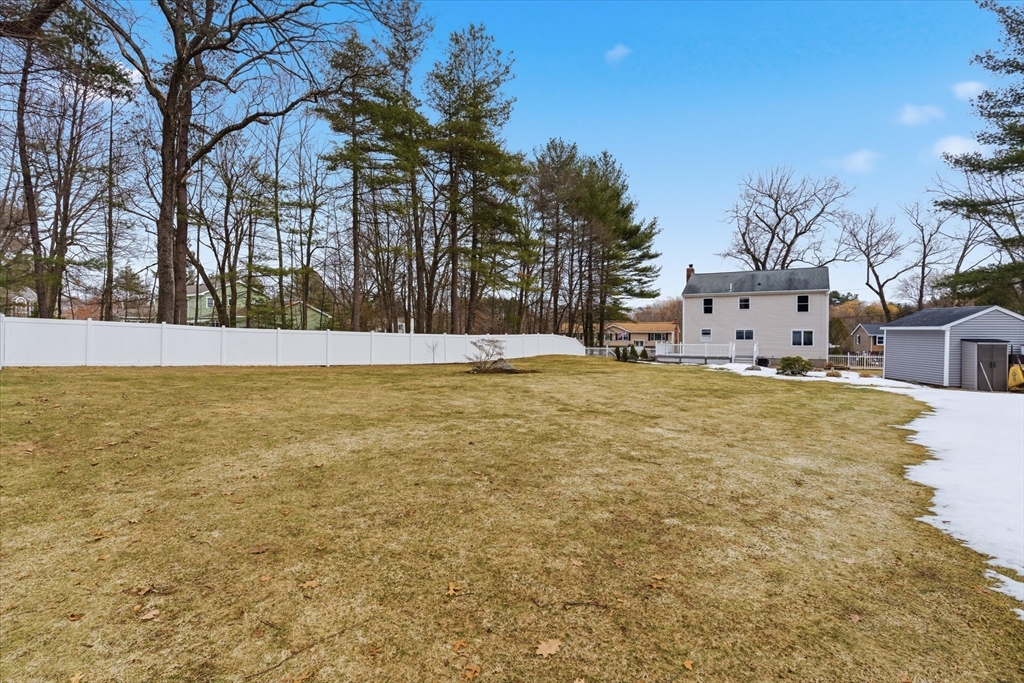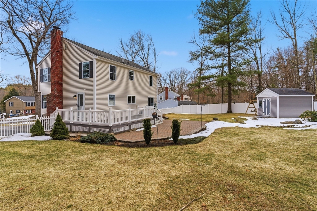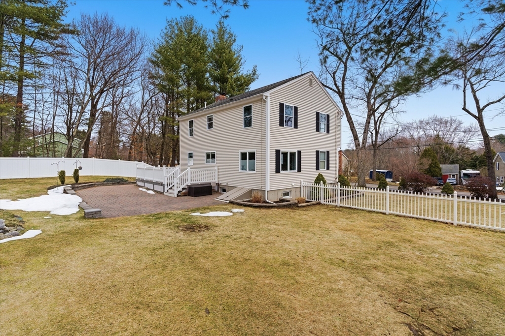 Picture perfect Colonial home with updates & upgrades throughout, move in ready, truly a pleasure to show! Bright and sunny kitchen & dining area overlooking fantastic fenced rear yard, upgraded cabinets, counters, SS appliances, breakfast side bar, dining area. Fireplace in family rm, cozy gas insert, recessed lights & ceiling fan, light filled living room, newer half bath complete 1st level. Oak stairs to four generous bedrooms & recent remodel full bath with new vanity, tub & flooring. Bonus lower level rec room/exercise room, play room you decide! Loaded with cabinets/storage, wet bar & much more. New siding & front door 2025, Freshly painted walls & trim, updated light fixtures & so much more. Exterior of home offers stunning established flowering shrubs and perennials front & rear, fully fenced & expansive 24' rear deck and 40' paver patio perfect for summer entertaining. Acre plus private lot & quick access to major routes. Open Sat 3/21 & Sun 3/22, 11-1.
