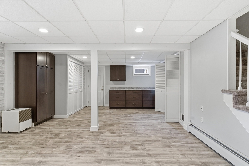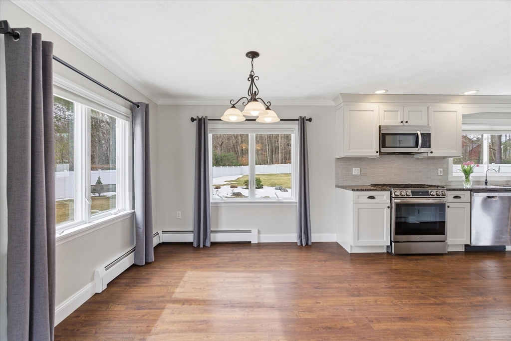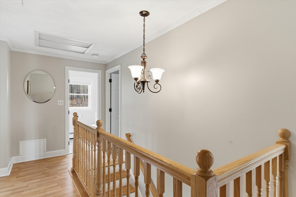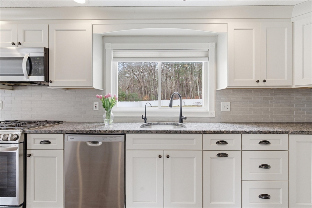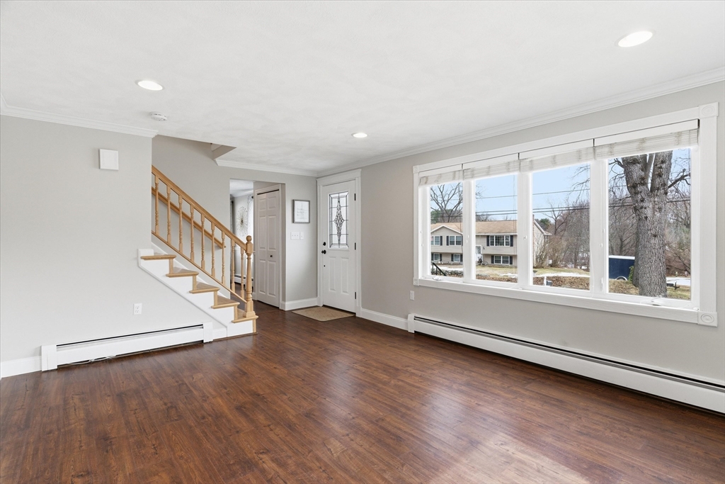 Picture perfect Colonial home with updates & upgrades throughout, move in ready, truly a pleasure to show! Bright and sunny kitchen & dining area overlooking fantastic fenced rear yard, upgraded cabinets, counters, SS appliances, breakfast side bar, dining area. Fireplace in family rm, cozy gas insert, recessed lights & ceiling fan, light filled living room, newer half bath complete 1st level. Oak stairs to four generous bedrooms & recent remodel full bath with new vanity, tub & flooring. Bonus lower level rec room/exercise room, play room you decide! Loaded with cabinets/storage, wet bar & much more. New siding & front door 2025, Freshly painted walls & trim, updated light fixtures & so much more. Exterior of home offers stunning established flowering shrubs and perennials front & rear, fully fenced & expansive 24' rear deck and 40' paver patio perfect for summer entertaining. Acre plus private lot & quick access to major routes. Open Sat 3/21 & Sun 3/22, 11-1.