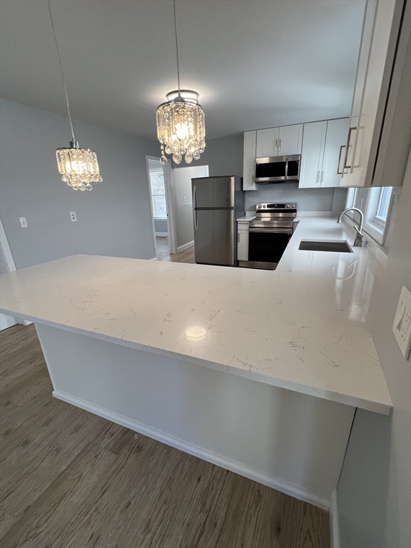 Welcome home to this beautifully renovated second floor 4 bedroom unit in the much desired Revere Beach neighborhood! Walk into the open concept living room and kitchen combo. The kitchen features a large island for family time and entertaining, which comes in splendid white quartz countertop accompanied by all stainless steel appliances. Throughout the house you will find natural light, new windows and doors, new vinyl flooring, renovated lighting fixtures, painted walls, and plenty of storage. Updated bathroom includes a shower/tub combo and vanity. Walking distance, less than 5 min to the Blue Line Revere Beach T-Station and a 20 minute ride to Boston. Walk to the beach and and enjoy close proximity to area's shopping, restaurants, medical facilities, and much more amenities on the beach. Tenant responsible for utilities.