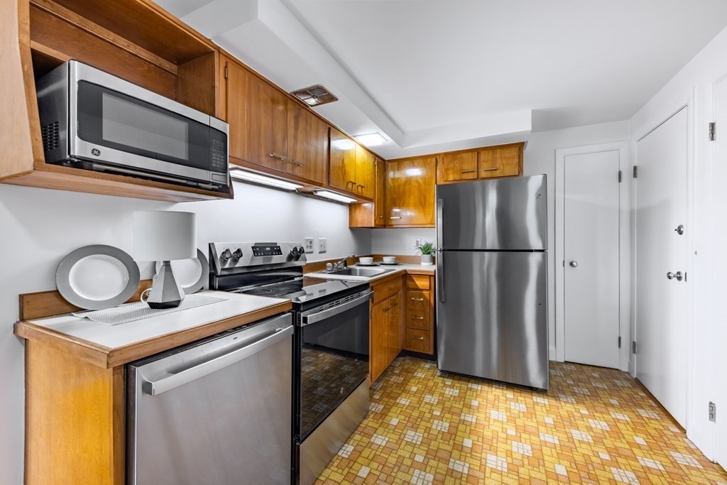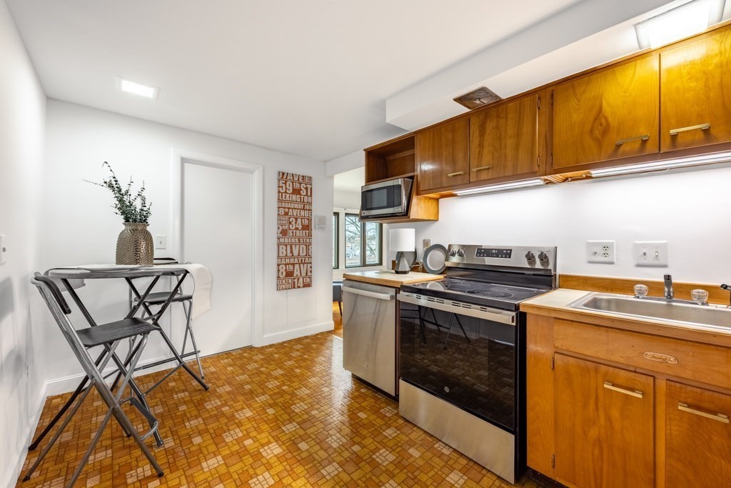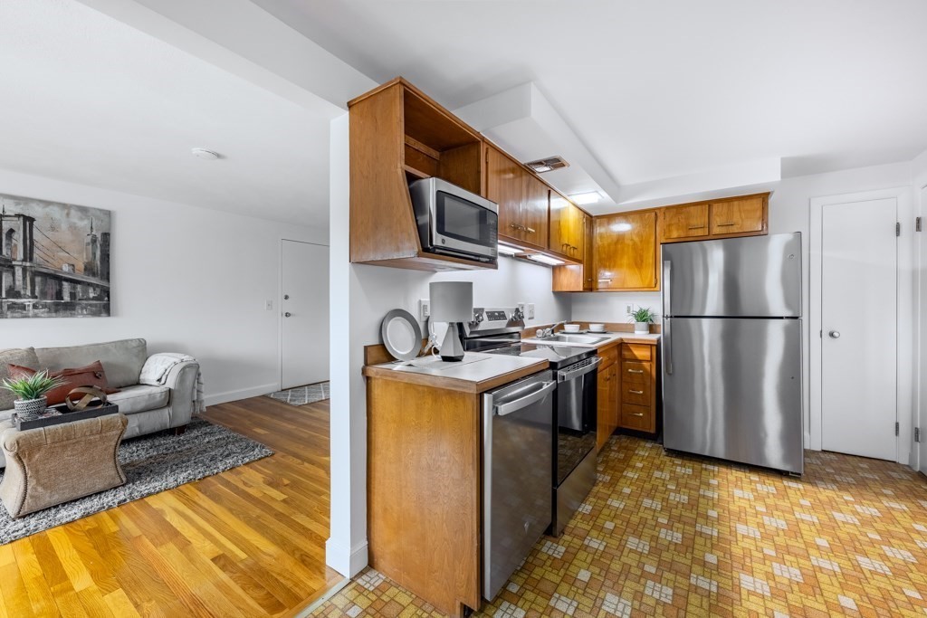 Unpack, move in, relax at this affordable condo at Woodbriar Place located across from the Wakefield commuter rail station a short trip to North Station or transfer to the Orange Line in Malden. This unit with an impressive 89 Walk Score, is close to everything Wakefield has to offer: seconds to the restaurants and stores on Tuttle St, minutes to the activities in the vibrant downtown and oh so close to Lake Quannapowitt with all of its recreational opportunities including boating, fishing, sports and the award winning farmer's market! This unit features gleaming hardwood floors, an eat-in kitchen with all new SS appliances, disposal, plumbing shutoffs and under-mounted lights. Low condo fee includes heat, water, maintenance, master insurance, snow removal with laundry in the building. There's nothing to do here but move in and start to enjoy carefree living in this perfect commuting location with the world at your doorstep. Building has gas heat and hot water systems. Easy to show!