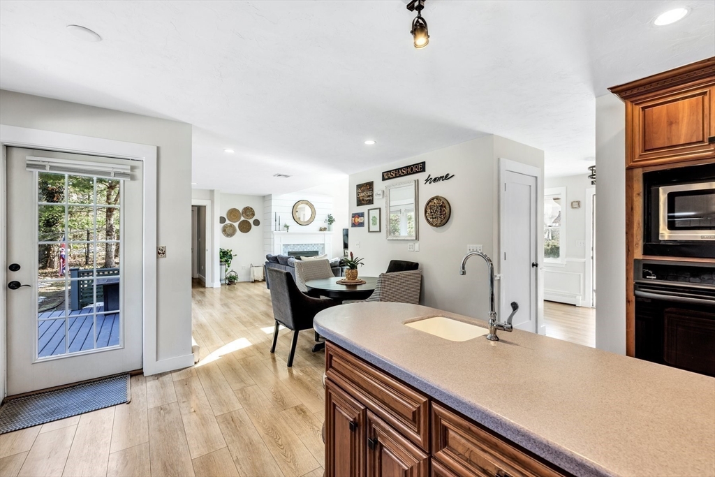 Welcome to this spacious Cape Cod home on a private 0.62-acre lot in desirable Marstons Mills. Built in 1999, this well-maintained Colonial offers over 2,600 sq ft with a flexible layout ideal for everyday living and entertaining. The home features 3 bedrooms, 2 remodeled bathrooms, central air, and durable LVP flooring throughout. Abundant natural light fills the main level, which includes a formal living room with vaulted ceilings, dining area, and large kitchen. There is also potential for a 1st floor bedroom with adjacent den/office, perfect for guests, remote work, or single-level living. A loft provides additional flexible space. Additional highlights include natural gas heat, whole-house generator and passing Title V septic system. Outside, enjoy level grounds with mature plantings, gardens, outbuildings, and a tranquil koi pond. Two-car garage and full basement provide storage and expansion potential. Conveniently located to Dowses, Sandy Neck and Craigville beaches!