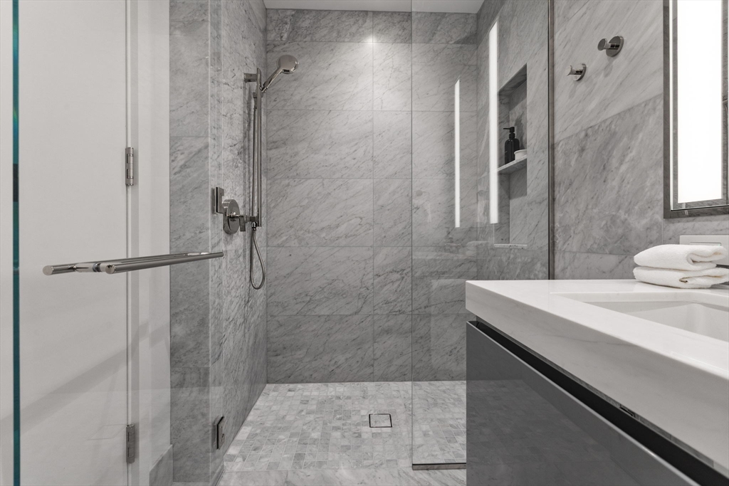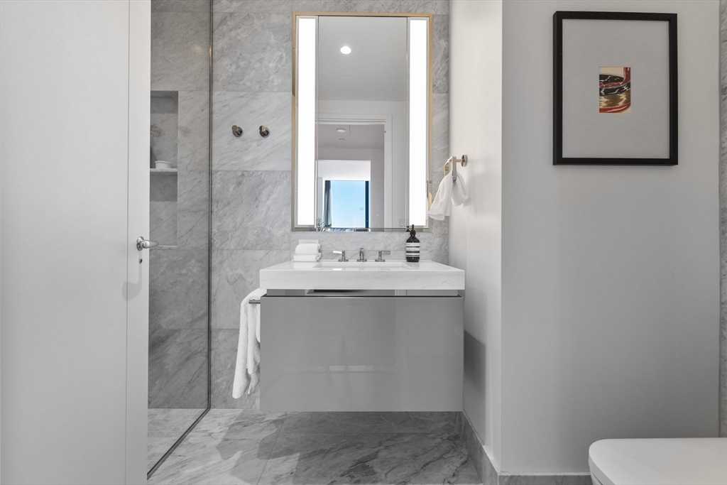 Live above the city at The Ritz-Carlton Residences, South Station Tower. Located within the reimagined South Station district connecting Fort Point to the Greenway, this spectacular corner residence sits approximately 650 feet above Boston and offers sweeping views over Downtown and the Seaport. The 1426 SF home features two bedrooms plus a den and three full baths, with an expansive living and dining area framed by floor-to-ceiling windows. The chef’s kitchen is appointed with custom marble countertops, designer appliances, and integrated wine storage. Residents enjoy legendary Ritz-Carlton services and access to an exceptional collection of amenities, including a state-of-the-art fitness center with treatment rooms and saunas, two outdoor terraces, a chef’s kitchen, a 72-foot outdoor swimming pool with Back Bay views, a dramatic double-height library lounge with fireplace, and a game room with sports simulator and bar—perfect for entertaining.