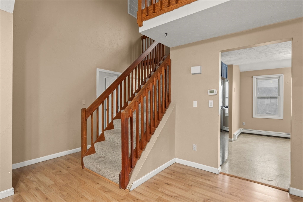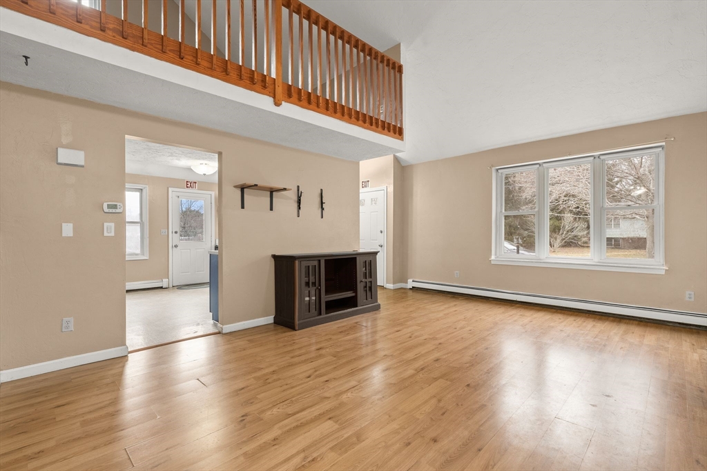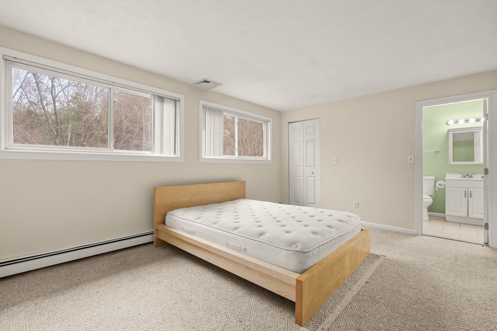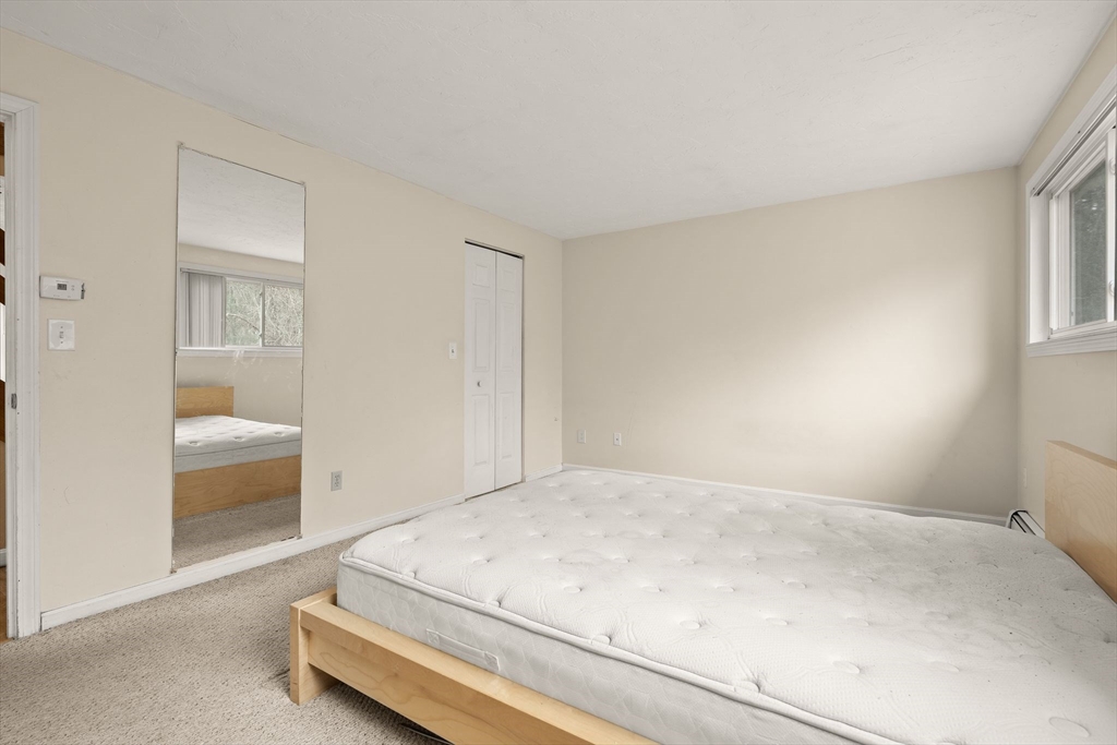 This large Condex comes with no condo fee! Spacious Living Room w/ cathedral ceiling, kitchen w/ several newer appliances and an eat-in area, 1.5 baths, and two bedrooms w/ good closet space round out the first floor. Upstairs is an open loft & a storage/attic area with the central air handler. Finished basement has a Family Room, third bedroom, an office or den w/ the washer and dryer in an alcove, additional storage areas and the utility room, with a walk-out to the back yard. Fenced-in area for privacy in the yard & a shed for your outdoor tools. Two off-street parking spots. Vinyl siding and windows. newer Energy-Star rated Burnham boiler, newer water heater. Great location, just minutes from the highways into Boston and beyond!
