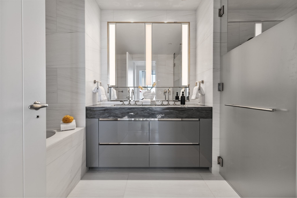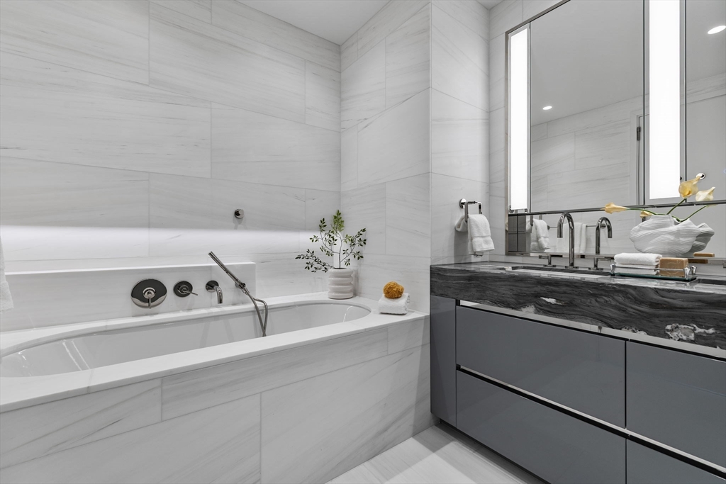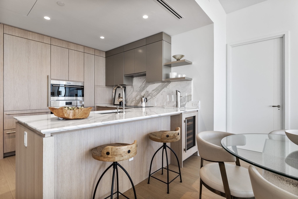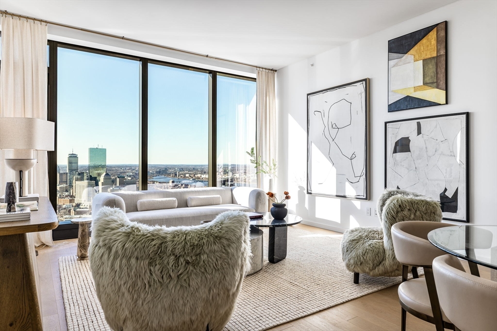 Live above the city at The Ritz-Carlton Residences, South Station Tower. Located within the reimagined South Station district connecting Fort Point to the Greenway, this spectacular corner residence sits approximately 650 feet above Boston and offers sweeping views over Downtown and the Seaport. The 1,123 SF home features one bedroom and twofold baths plus a den, with an expansive living and dining area framed by floor-to-ceiling windows. The chef’s kitchen is appointed with custom marble countertops, designer appliances, and integrated wine storage. Residents enjoy legendary Ritz-Carlton services and access to an exceptional collection of amenities, including a state-of-the-art fitness center with treatment rooms and saunas, two outdoor terraces, a chef’s kitchen, a 72-foot outdoor swimming pool with Back Bay views, a dramatic double-height library lounge with fireplace, and a game room with sports simulator and bar—perfect for entertaining.
