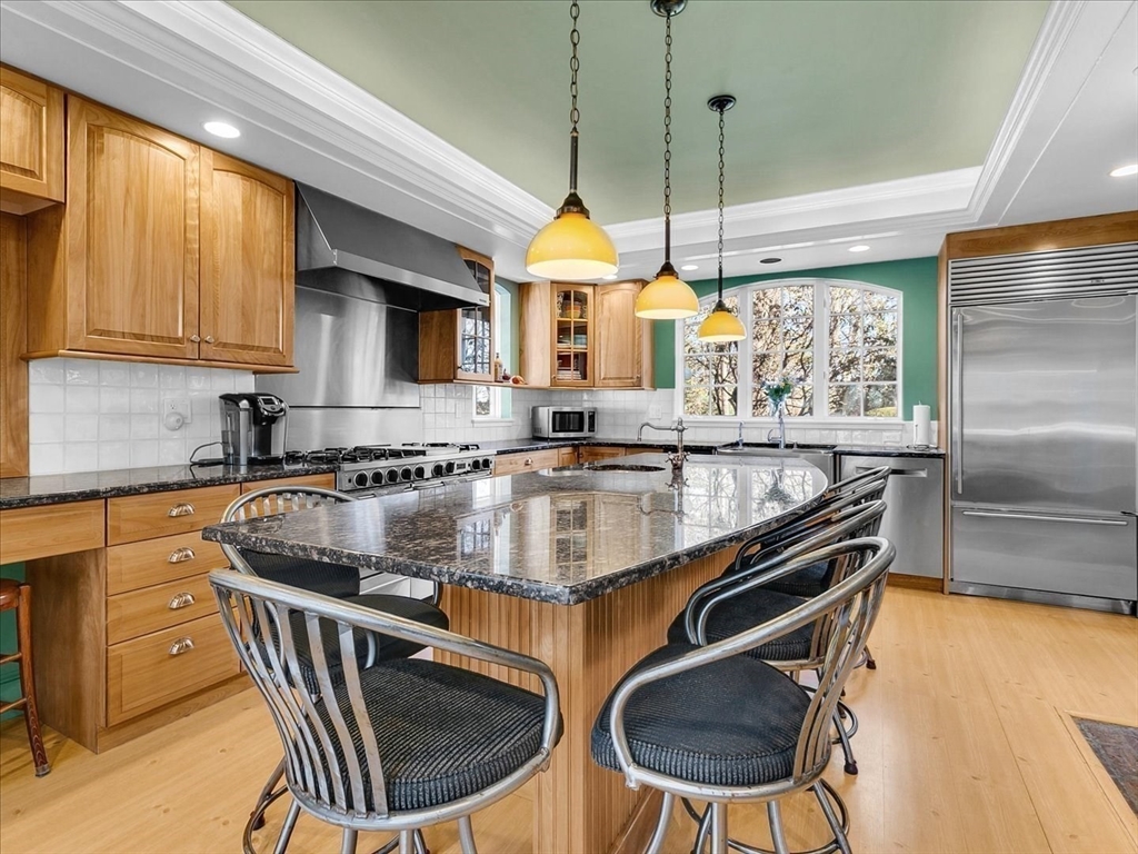 This is a rare opportunity atop one of Newton’s most coveted hilltop locations. Winner of the Newton Beautification Award and featured in a local design magazine, this original farmhouse—held by fewer than five owners—blends timeless character with thoughtful modern updates and exceptional future potential. Surrounded by $5–$6.5M homes, the setting is truly premier. The residence offers 4 bedrooms, 3 full baths, and 2 half baths, including two fully renovated designer baths featuring a slipper tub and Italian marble vanity. The chef’s kitchen boasts a Sub-Zero refrigerator, chefs 6-burner gas convection range with center griddle, wine fridge, and powered skylight. Enjoy two level deck, three wood-burning fireplaces plus a gas fireplace. The grand primary suite includes a spa-like bath, large walk-in closet +Accessory room. Numerous updates throughout preserve historic charm while providing modern comfort, including a new architectural shingle roof. In-law or home office suite potential