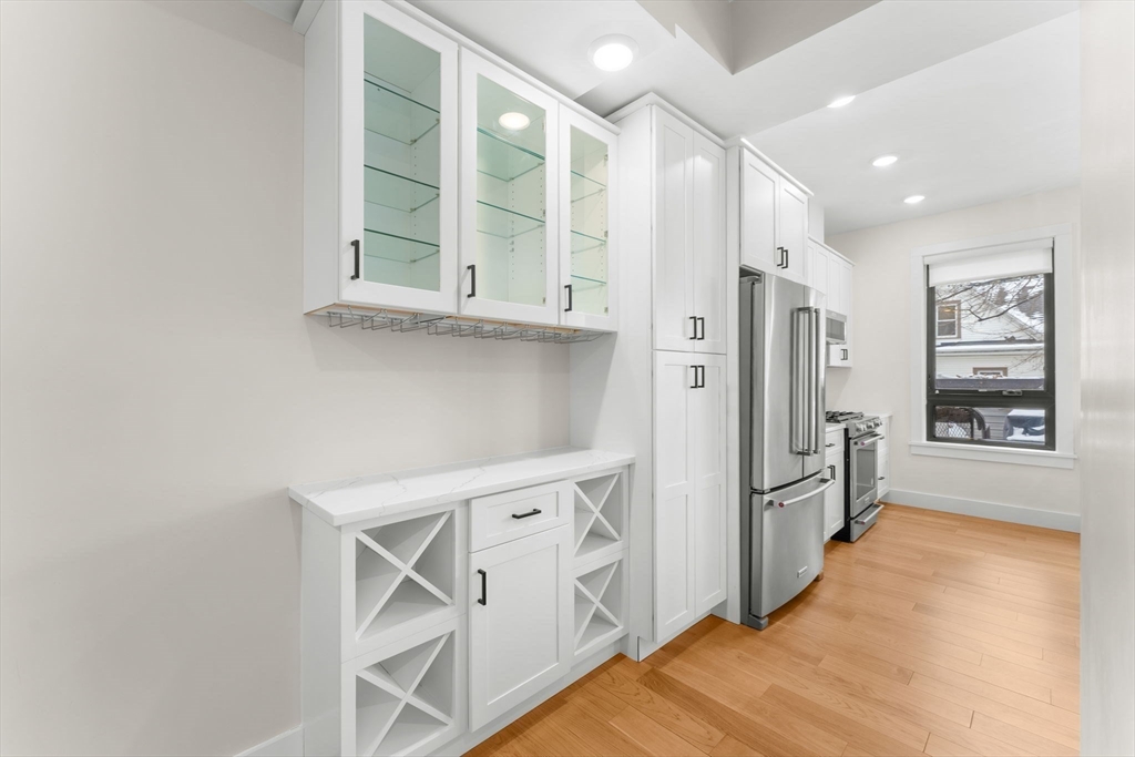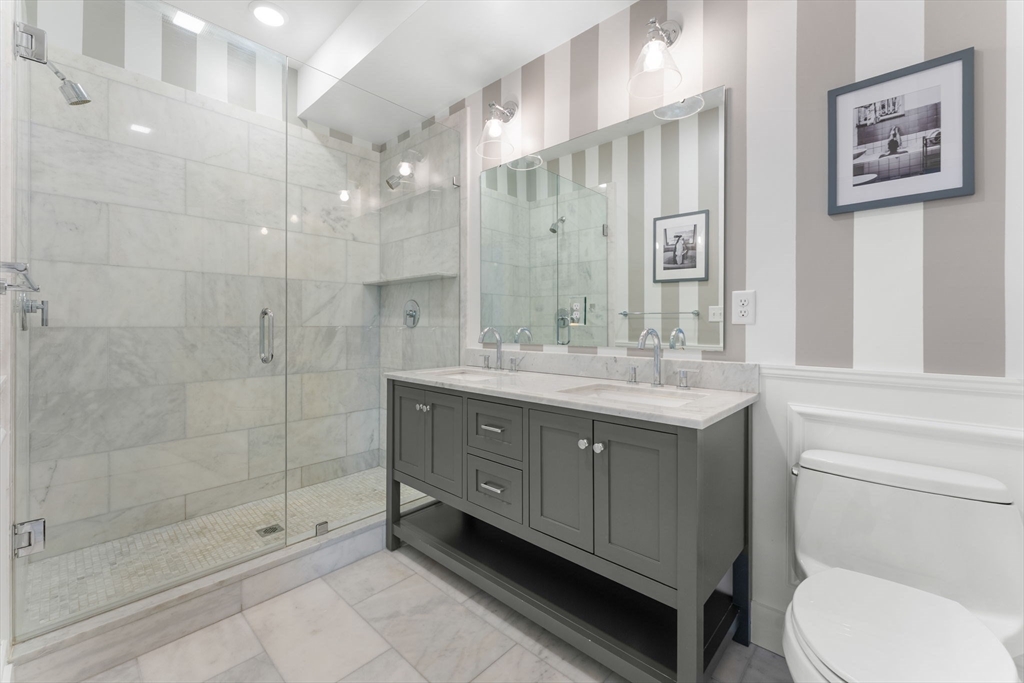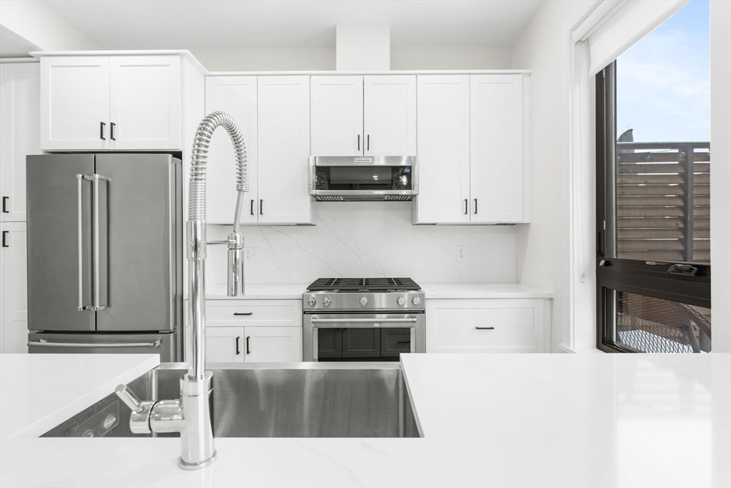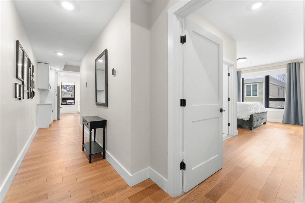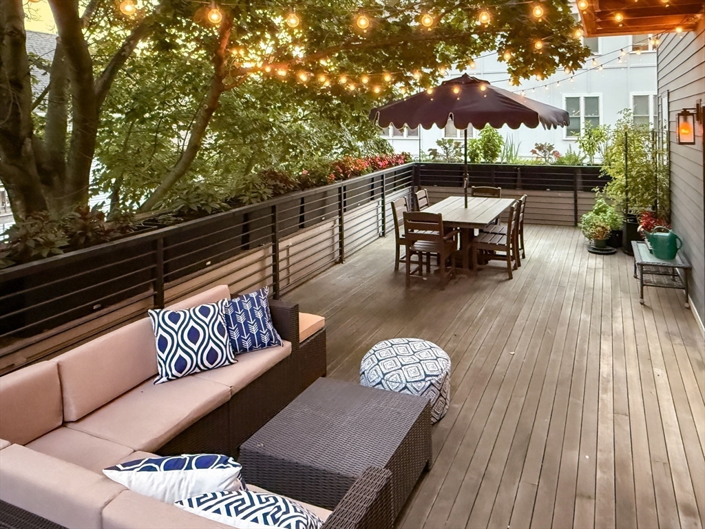 2 Garage Parking + Guest Space. Ample Storage. Large Walk Out Deck - Well appointed 2-bedroom, 2-bath condo in the heart of Somerville, offering a seamless blend of modern finishes and rare outdoor space. Hardwood floors run throughout, complemented by thoughtfully upgraded details that create a sleek, contemporary feel. The spacious primary suite boasts a luxurious en-suite bath with marble flooring and a double vanity, providing a serene private retreat. Step outside to an expansive 350-square-foot private deck - perfect for entertaining, dining, or unwinding outdoors. Additional highlights include two heated garage parking spaces, guest parking and extra storage, combining convenience with practicality. A rare opportunity to own a stylish, turnkey home with exceptional indoor-outdoor living in one of Somerville’s most sought-after neighborhoods.
