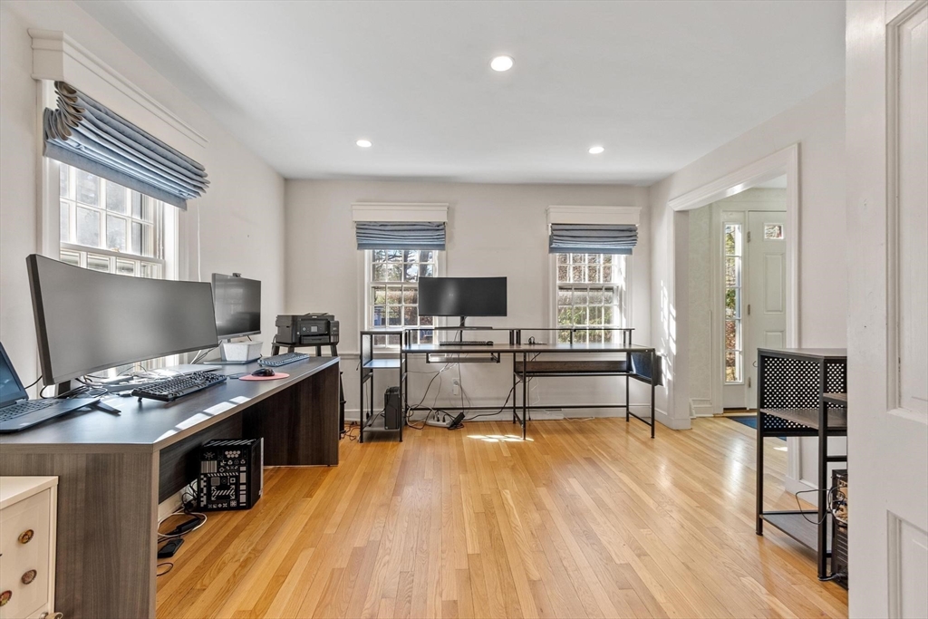 Exquisite, stately, very well-maintained center entrance colonial in the Haynes Elementary school district! This wonderful home has the perfect set up with a separate living area, second kitchen, separate entrance, living room, full bath, and 2 bedrooms that can be used for your loved ones or whoever fits that space in your life. A cabinet-packed kitchen with newer appliances separates the sun-drenched, over sized dining room with a fire place and hardwood floors, and the large living room with built in cabinets, stunning fire place and a mantle from the old Wayside Inn. Laundry room with a pantry, office, half bath, and a gorgeous sun room that is tranquil and private for you to enjoy all year round, completes the main level. Large vaulted ceiling primary suite has two closets and its own primary bath, recessed lighting everywhere in the home, fresh paint throughout, newer Trex deck, and a whole house generator! Enjoy your serene, secluded yard that is perfect for the warm weather!