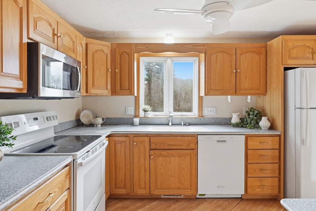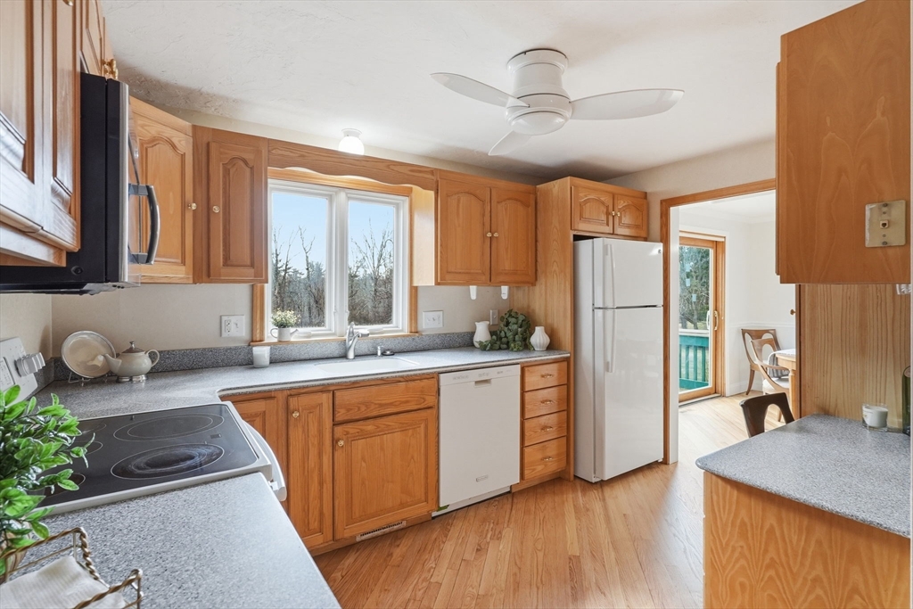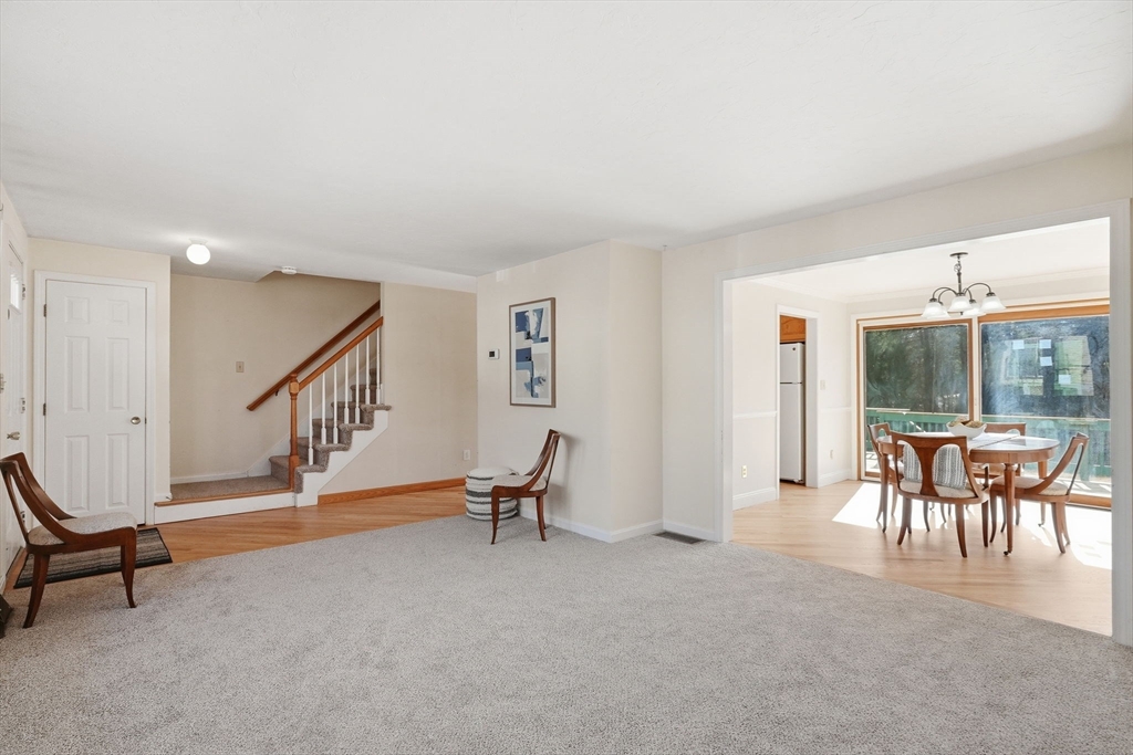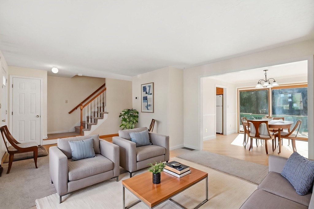 This FABULOUS End Unit, located in the heart of Downtown Millis, is just waiting for you to make it Home. You will be immediately greeted by the bright, sun-filled main level spaces with open flow and modern updates. Three large bedrooms with ample closet space and an updated full bathroom complete the second floor, and the newly refinished walk-out lower level provides additional flexible bonus space for an extra bedroom, office, workout room, and extra storage. Outside you will find an oversized deck overlooking a beautiful, peaceful yard offering the perfect spot for your morning coffee.Two deeded parking spots, #3 and #8, with a reasonable HOA fee make this one an affordable option! Conveniently located just a stone's throw from local restaurants, main routes, and amenities, this one has it all!
