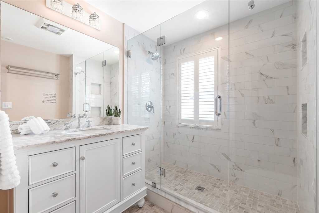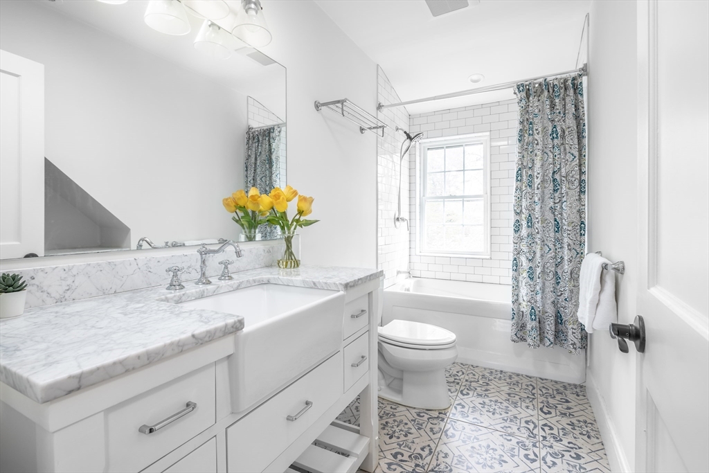 Great location of a wonderfully renovated house, updated to meet the needs of many! Beautiful kitchen w/ extra lg island, updated cabinets, work area & coffee bar - opens to lg patio w/ fire pit. First floor also has dining rm off kitchen, family rm w/ add'l game room section, fireplaced living rm, first floor home office (which could double as a first floor 6th bedroom) half bath and mudroom with shelving connects to the garage. Upstairs has an updated primary suite with walk-in closet, three add'l bedrooms and another full bath. Lower level has a gym area with gym floor/mirrors, add'l hang out/family area, another updated full bath, laundry and huge storage room with shelving. Separate stairs lead to a private guest suite over garage w/ 5th bedroom/living/kitchenette area, washer/dryer hookup and fourth full bath. Home is just 5/10 of a mile to Needham Heights shops/train to Boston, 2/10 to Cricket Field and is less than 1 mile to the high school, elementary school & highway access!