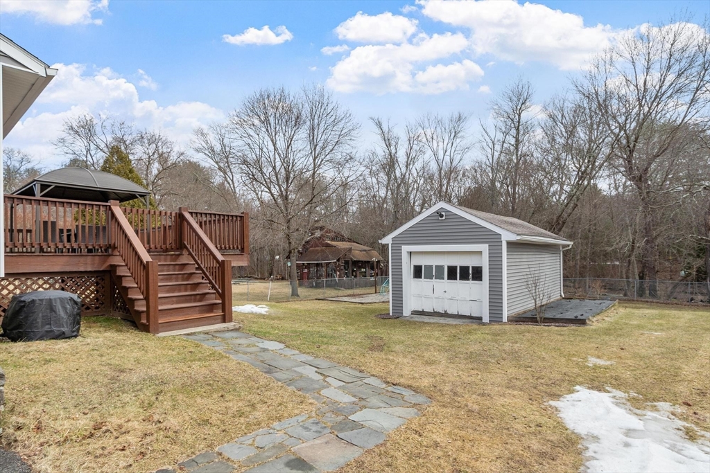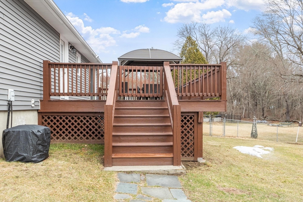 Situated at 6 Bartlett St in Oxford, this single-family residence presents an inviting home, ready for immediate occupancy. The heart of this residence is found in its thoughtfully appointed kitchen, where stone countertops offer a sophisticated workspace for culinary endeavors, complemented by the timeless appeal of shaker cabinets, creating an atmosphere of warmth and practicality. Within the comfortable interior, three serene bedrooms provide peaceful retreats, while one full bathroom and an additional half bathroom in a fully finished basement offer convenience and comfort throughout the home. Outside, the property extends its welcoming embrace with a private deck, ideal for quiet moments, all within a generously sized, fenced backyard that enjoys a tranquil woods and river view.