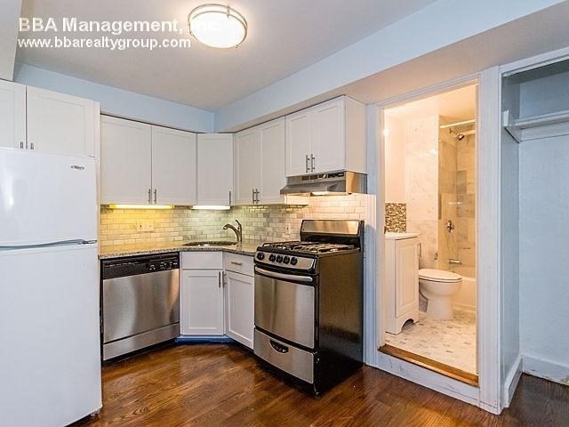 This studio apartment at 94A Marion St. in Coolidge Corner offers the perfect blend of comfort and convenience for anyone seeking a vibrant lifestyle in Brookline.Imagine relaxing on your private porch overlooking peaceful homes, with a park just beyond. Step inside and discover a functional layout, ideal for a single person or couple. The home boasts a Martha Stewart white shaker kitchen with granite counters, stainless steel appliances, gas cooking, dishwasher, and walnut color hardwood floorsEnjoy the convenience of in-building laundry, window AC, heat and hot water included in your rent. Plus, with the Green "C" Line T stop nearby, exploring all that Brookline has to offer is a breeze. Longwood Medical, Brookline Village, restaurants, universities, and nightlife are all within easy reach.