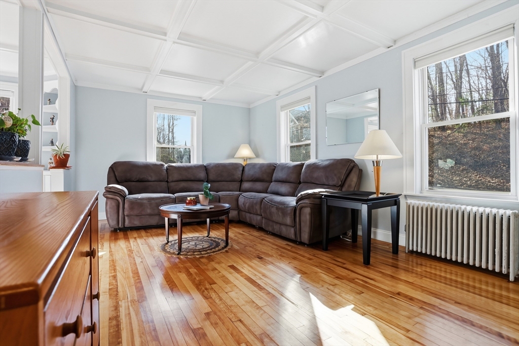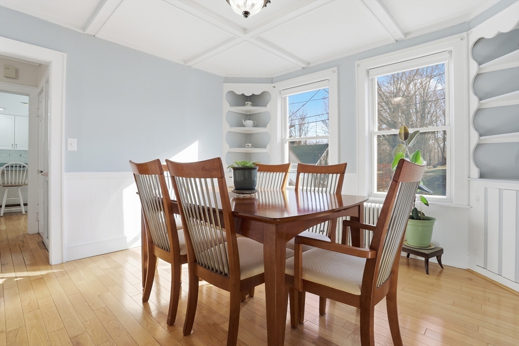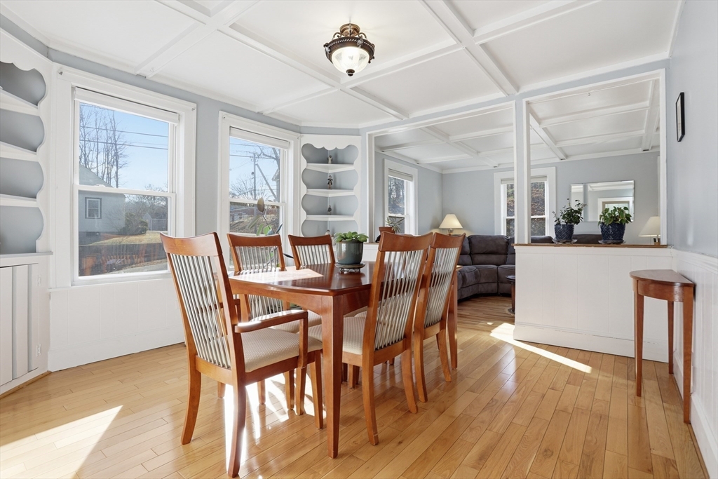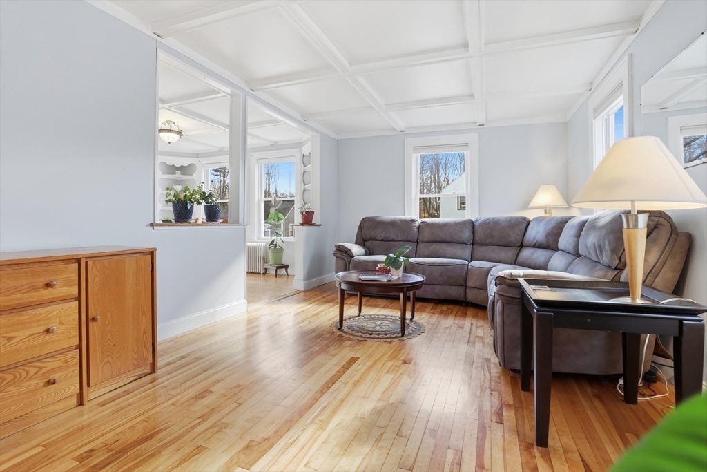 Welcome to 98 Washington Street, a character-filled Groveland gem! This inviting 2 bedroom, 1 bathroom raised ranch offers 1,475 square feet of living area.The heart of the home, the kitchen is bright and updated, featuring a wall oven and a huge island. The beautiful dining room has original built-ins, hardwood flooring, and a coffered ceiling, as does the living room. The basement is ready for your finishing touches and leads to the 1 car garage with workbench. This move-in-ready home is the perfect "condo alternative" or starter home for anyone looking to plant roots in this charming community.
