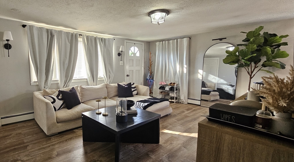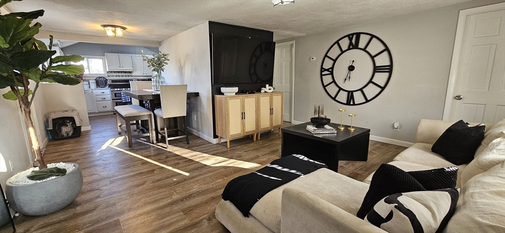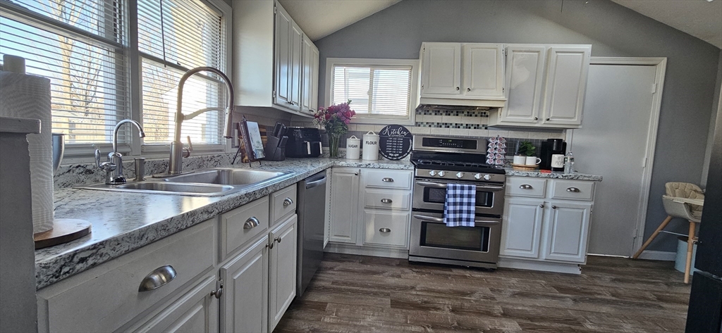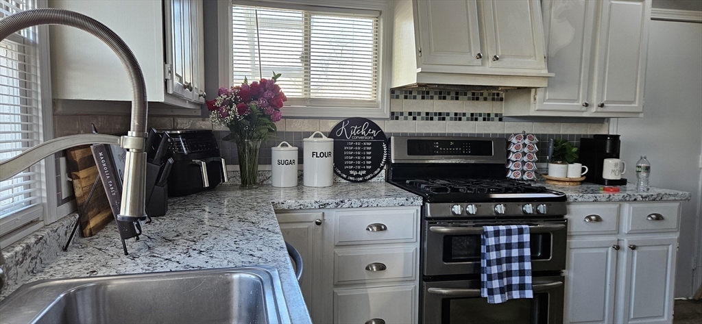 Welcome to this beautifully updated one-level ranch on a dead end street, spacious living with an open layout that feels larger than expected. The living and dining areas flow seamlessly, creating the perfect space for entertaining. The bright kitchen features cathedral ceilings, skylights, crisp white cabinetry, newer countertops, and stainless steel appliances. The primary bedroom showcases hardwood floors and the two additional bedrooms offer carpeting. A full bathroom and and a utility room/ laundry room complete the interior. Step outside to a level yard ideal for outdoor enjoyment, from summer BBQs to relaxing evenings. A detached garage adds extra convenience and extra storage space as needed. Great location, close to Brockton Hospital and nearby shopping. Nothing to do but fall in love. First showing at Open House Sunday, March 22nd. 12pm to 2pm. Text Listing agent for private showings after.