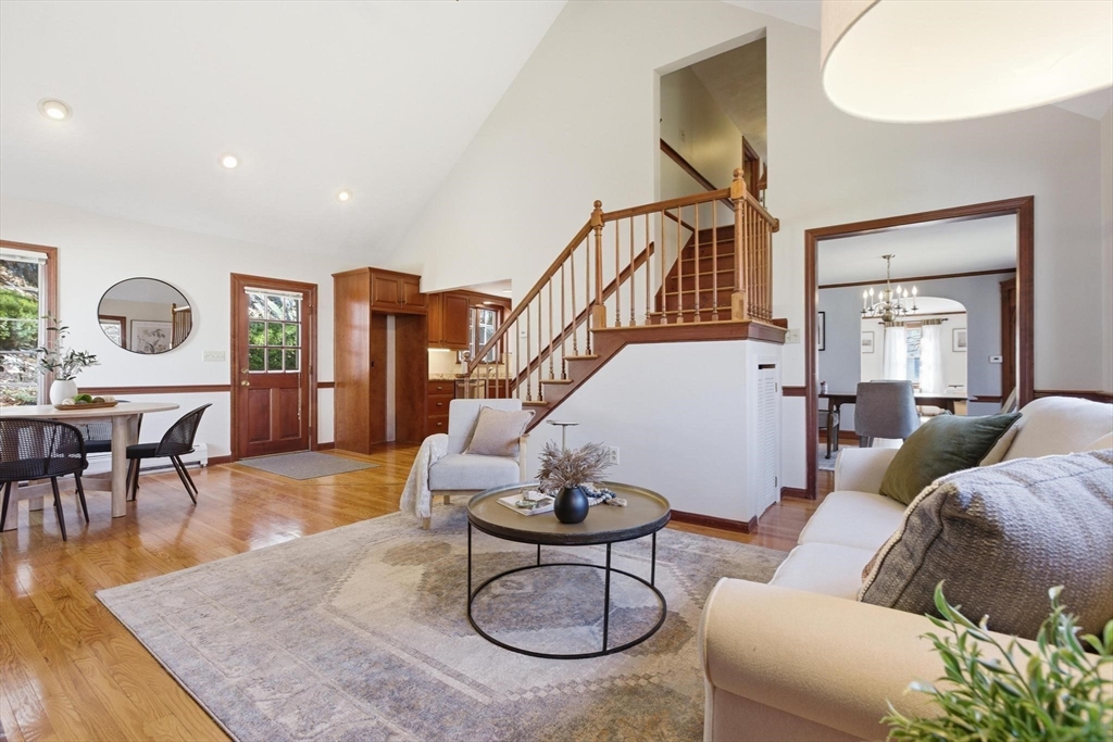 Located in one of Greenwoods FINEST NEIGHBORHOODS, this one's a HIDDEN GEM! Lovingly cared for featuring a FIRST FLOOR PRIMARY BEDROOM. Open concept family room, flowing into the kitchen, offers CATHEDRAL CEILINGS; a stunning 2 STORY- floor to ceiling, brick WOOD BURNING FIREPLACE and exterior access, just a step down to a private yard/patio. Truly the heart of this home! Kitchen, w/an abundance of upgraded wood cabinets, stainless steel appliances, granite counters, tile back splash and hardwood floors. Full, remodeled and stunning first floor bathroom w/ walk in tastefully tiled oversized shower. Dining room and a formal living room with a second fireplace completes this unique 1st floor layout. Two generous size bedrooms up along w/ a second full bathroom. Lower level includes an oversize game room, bonus room or office & laundry room. Options are endless. CLOSE TO TRAIN! This meticulous and lovingly cared family home, with its UNIQUE FLOOR PLAN, is now ready for its next chapter.