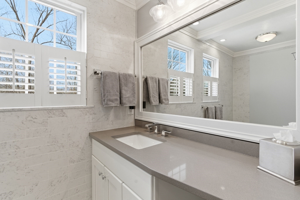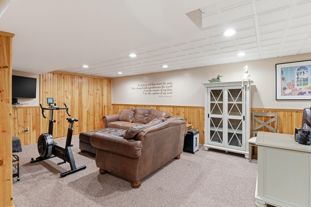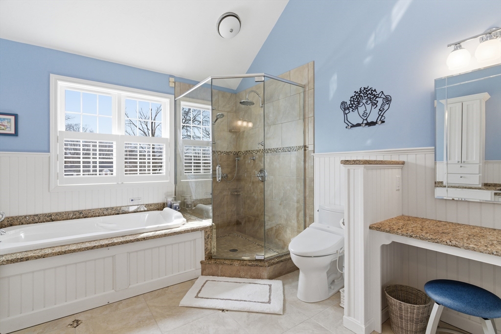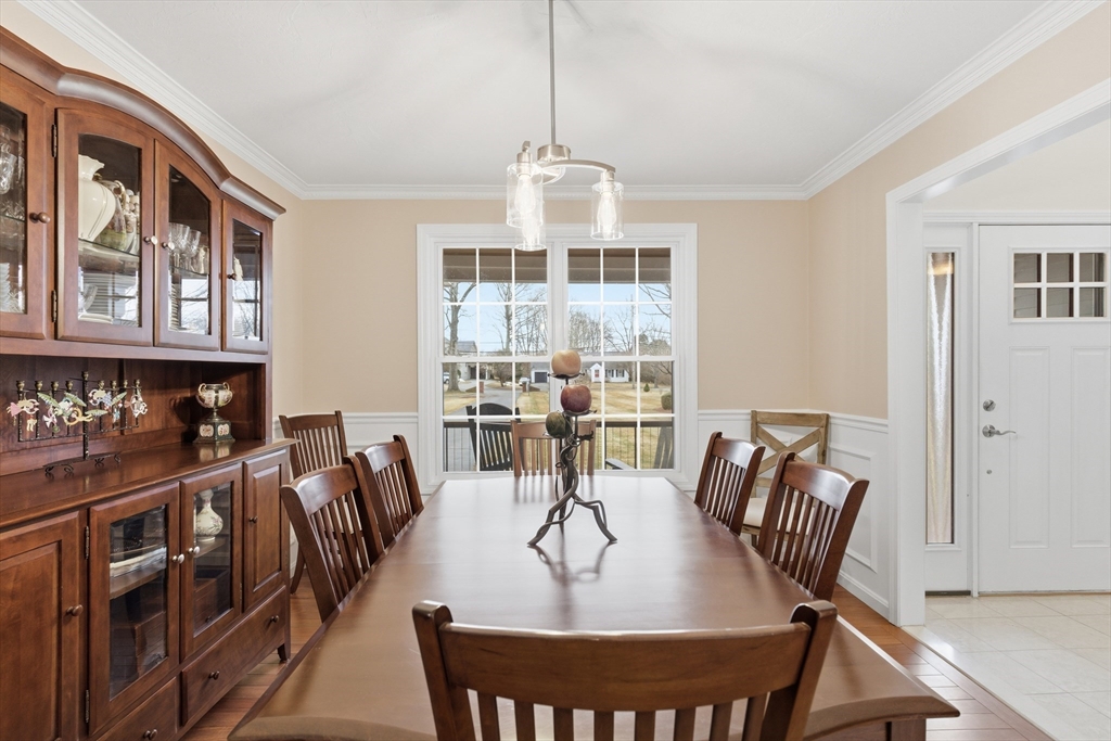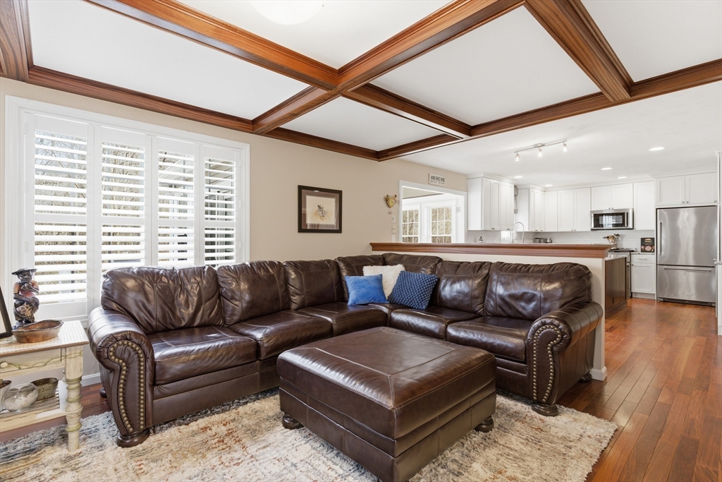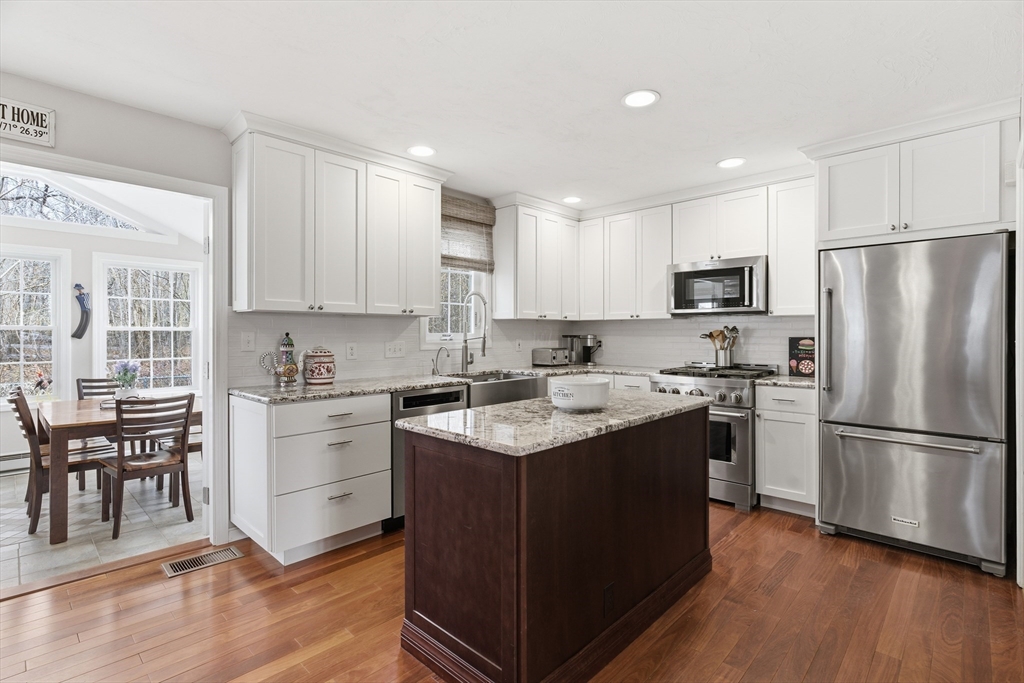 Move right into this absolutely stunning, updated Colonial on beautiful, private, 3/4 acre lot in wonderful location! Lovely farmers porch leads to 2 story foyer w/dual staircase! Formal dining rm w/hardwood fl, crown molding & wainscotting! Gorgeous custom kitchen w/commercial grade stainless steel appliances, granite, island, recessed Lgts, tile backsplash, back staircase & hardwood flr opens to beautiful living rm w/gas fireplace, wood coffered ceiling & hardwd fl! Spectacular sun rm addition w/cathedral ceiling, recessed Lgts, walls of windows & slider to huge patio that wraps around the whole back of house w/pergola overlooking private yard w/Lg shed! Convenient 1st Laundry/mudrm to gar w/epoxy fl! 1st flr office! Wonderful Primary suite w/cathedral ceiling, spa like bthrm & amazing walk in closet/dressing rm w/custom built ins! Finished lower level w/recessed Lgts, bedroom & loads of storage! Gas heat, Central air! Walk to shops & the Common & mins to schools & all major routes!