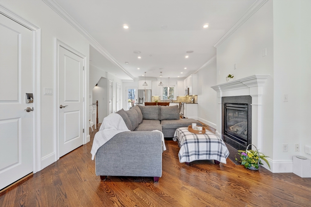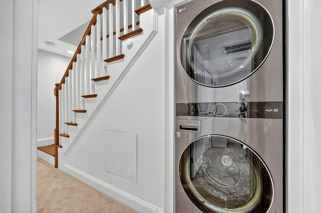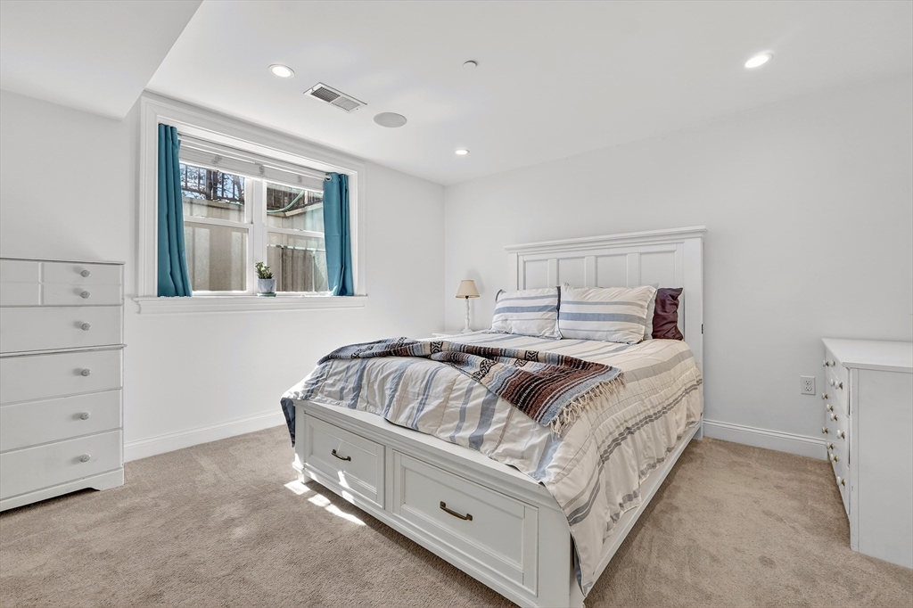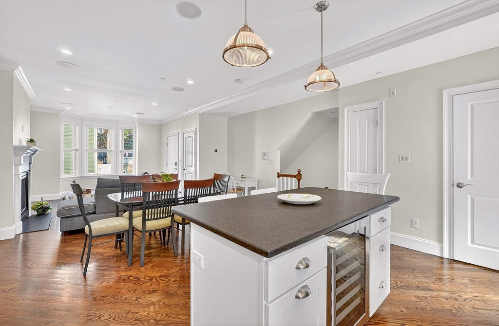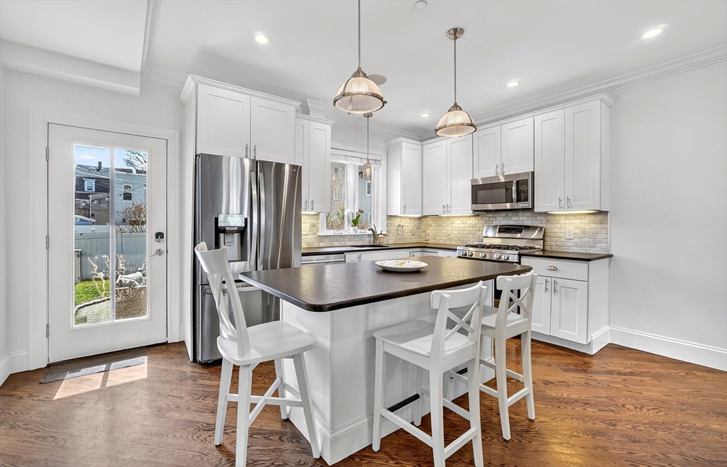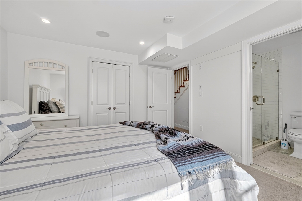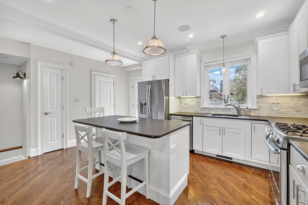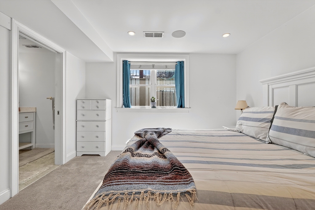 An East Side duplex offering exceptional indoor–outdoor living, highlighted by a private fenced yard that feels worlds away from the city. This outdoor retreat features a beautifully finished stone patio ideal for entertaining, dining, or gardening. Your dog(s) will love you for it! (Yes Pet Friendly) The home was fully gut-rehabbed in 2015 and spans two levels with a bright, open layout, hardwood floors, oversized bay window, and gas fireplace anchoring the main living area. The kitchen is thoughtfully designed with white shaker cabinetry, honed granite counters, stainless steel appliances, generous island seating, and a built-in wine fridge. Downstairs, two spacious bedrooms each feature full en-suite baths (primary bath features heated floor), creating comfortable private retreats. Additional highlights include central air with Nest thermostat, in-unit laundry, surround sound, and excellent closets. Parking space rental will be available for $400 monthly directly across the street.