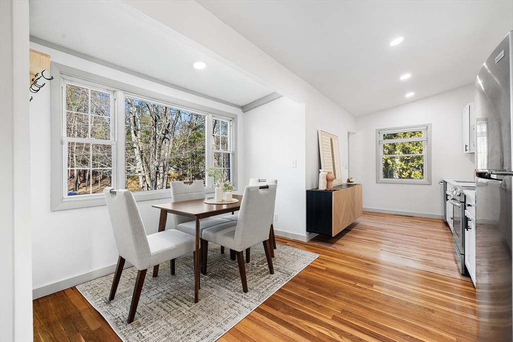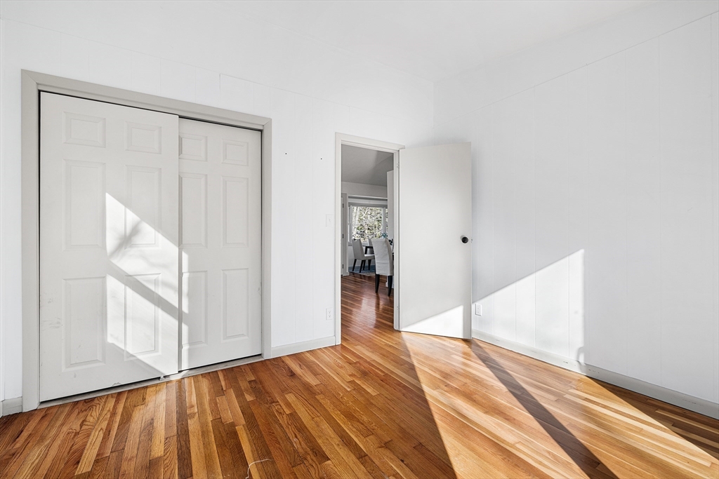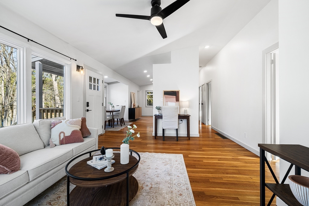 Experience easy single-level living in this impeccably updated ranch. The brand-new kitchen features modern countertops and a spacious walk-in pantry. Gleaming hardwood floors and abundant natural light flow throughout, leading to a refreshed bathroom with a new vanity, sink, and stylish flooring. Commuters will love being just one mile from the MBTA with quick access to Route 2 and I-495, plus nearby sidewalks and wooded trails. A new sliding door opens to outdoor living with front and back decks built in fall 2025 and a side deck refreshed in summer 2025. Enjoy a generous, rolling yard with a storage shed. Additional updates include a new rubber roof, new windows, and a Roth oil tank, while the home also offers central AC. Spacious basement offers great storage and future potential.