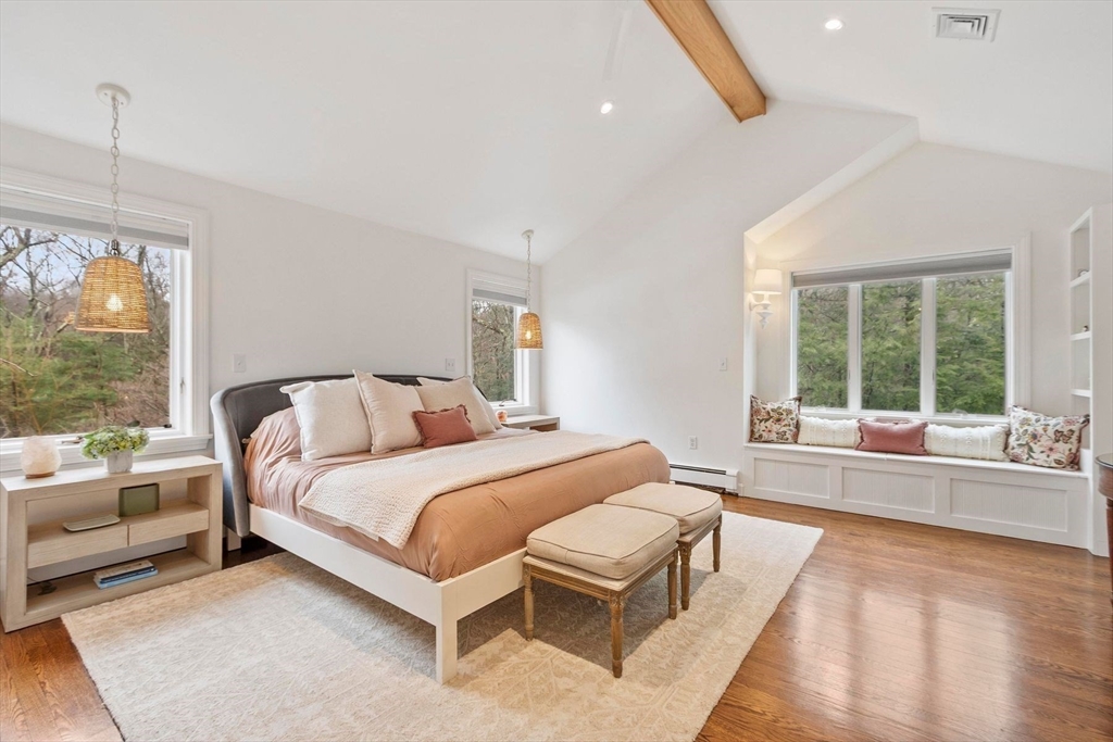 Thoughtfully reimagined by renowned Boston designer/ GC Milk and Honey, at the end of a cul-de-sac in a highly desirable Concord neighborhood. Chef’s kitchen w/top-of-the-line appliances - 8-burner Fisher & Paykel range & 2 Miele dishwashers, along w/ an enormous center island & spacious eat-in area that opens to a sizable family room w/ wood-burning FP. 1st floor also offers a versatile primary suite option & a private home office w/ FP. Upstairs, the primary suite is a luxurious retreat w/ spa-like bath - steam shower, air-jet soaking tub, & lg walk-in closet w/ extensive custom built-ins. Convenient 2nd-floor laundry area w/ washer & dryer. LL w/ 7’3” ceilings offers home theater, sauna, exercise room, & lg BR w/ full BA. Impressive outdoor oasis w/ screened porch, bluestone patio, & refurbished gunite pool surrounded by lush landscaping & perennial gardens. Heated outdoor cabana w/ 1/2 bath - flexible space for home office, studio, or guest retreat. Surrounded by walking trails!
