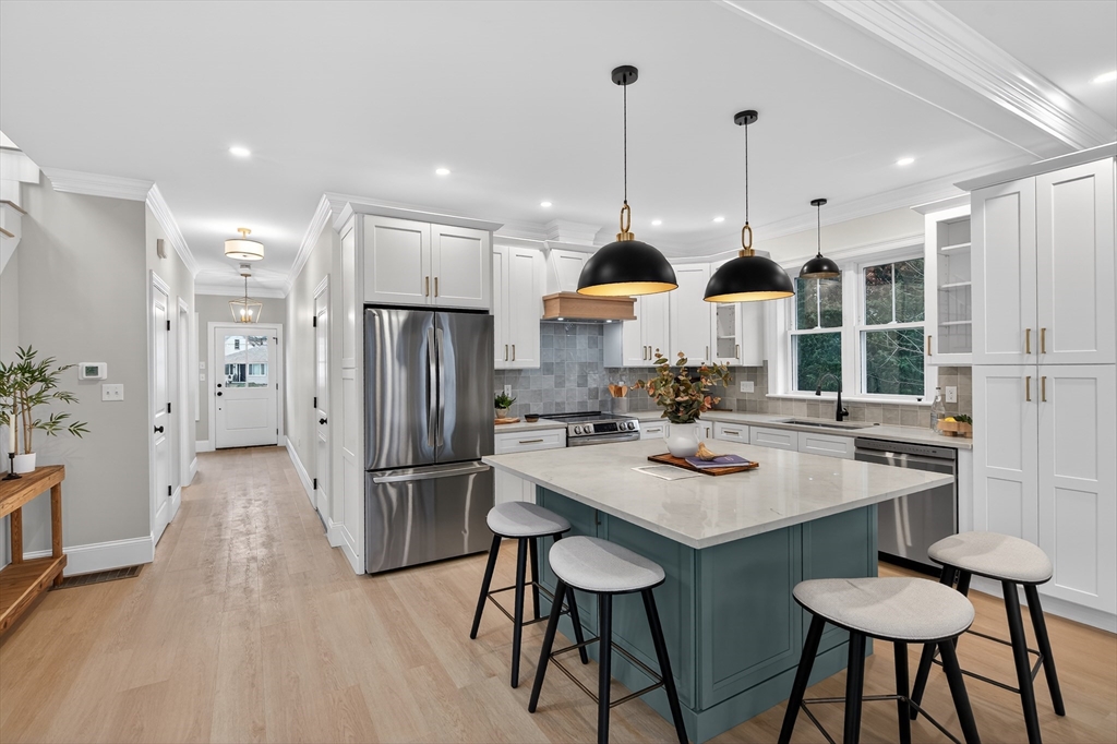 New construction High Efficient Colonial in sought-after MacArthur school district, with over 3,300 square feet of thoughtfully designed space, packed with modern amenities and high-end finishes. Beautiful chef's kitchen featuring upgraded cabinetry, quartz countertops, a large island, stainless steel appliances. The sunlit southern exposure open floor plan flows seamlessly into the living room, with a fireplace, recessed lighting, and crown molding. The dining room adds an elegant touch with its own crown molding a fabulous chandelier perfect for setting the mood at every gathering. Step through the slider onto the composite vinyl deck and enjoy a peaceful yard with professional landscaping, sprinkler system, and a fully fenced yard. The finished lower level delivers a spacious family room with a full tiled bath, recessed lighting, ideal for guests, home office, or media room. Highlights include three zone heat and AC. Open House Saturday and Sunday, 12:00 to 1:30
