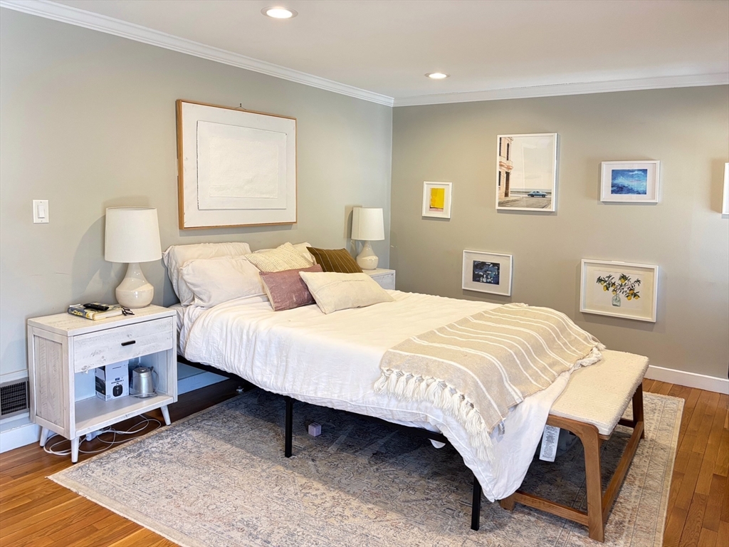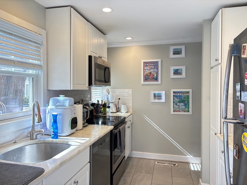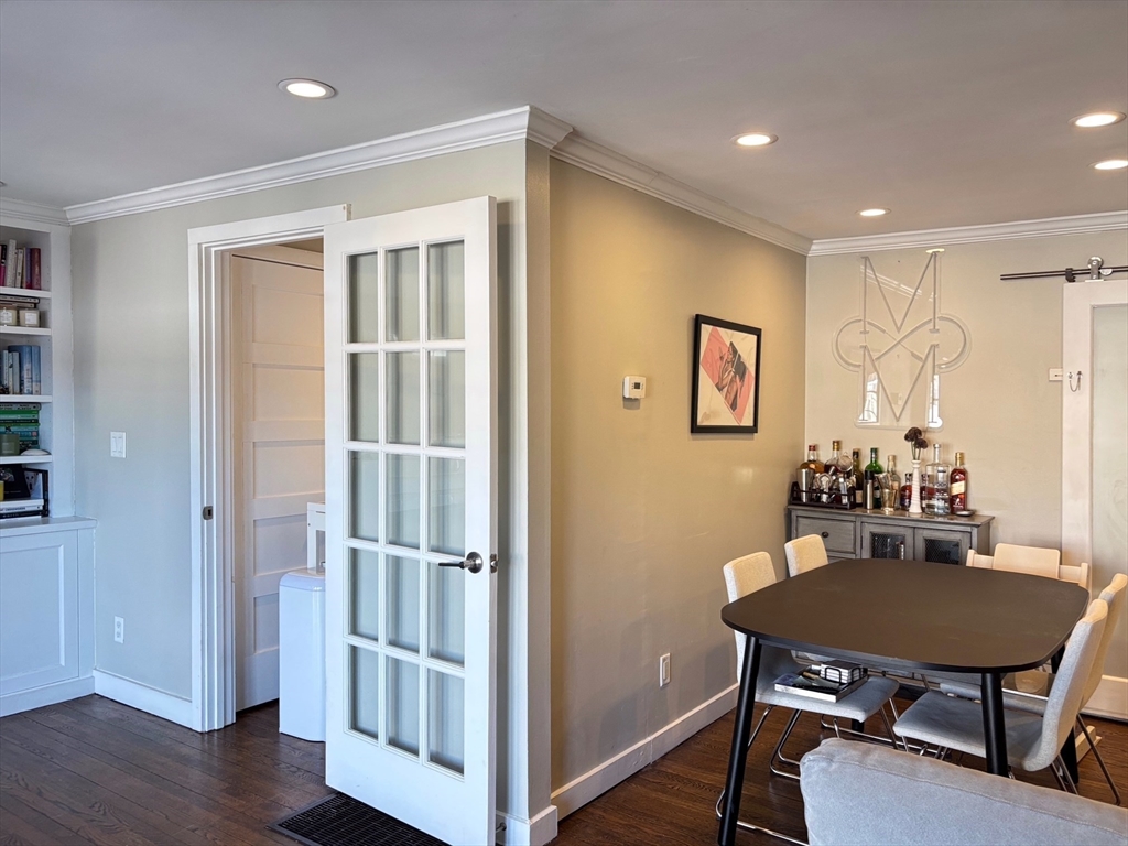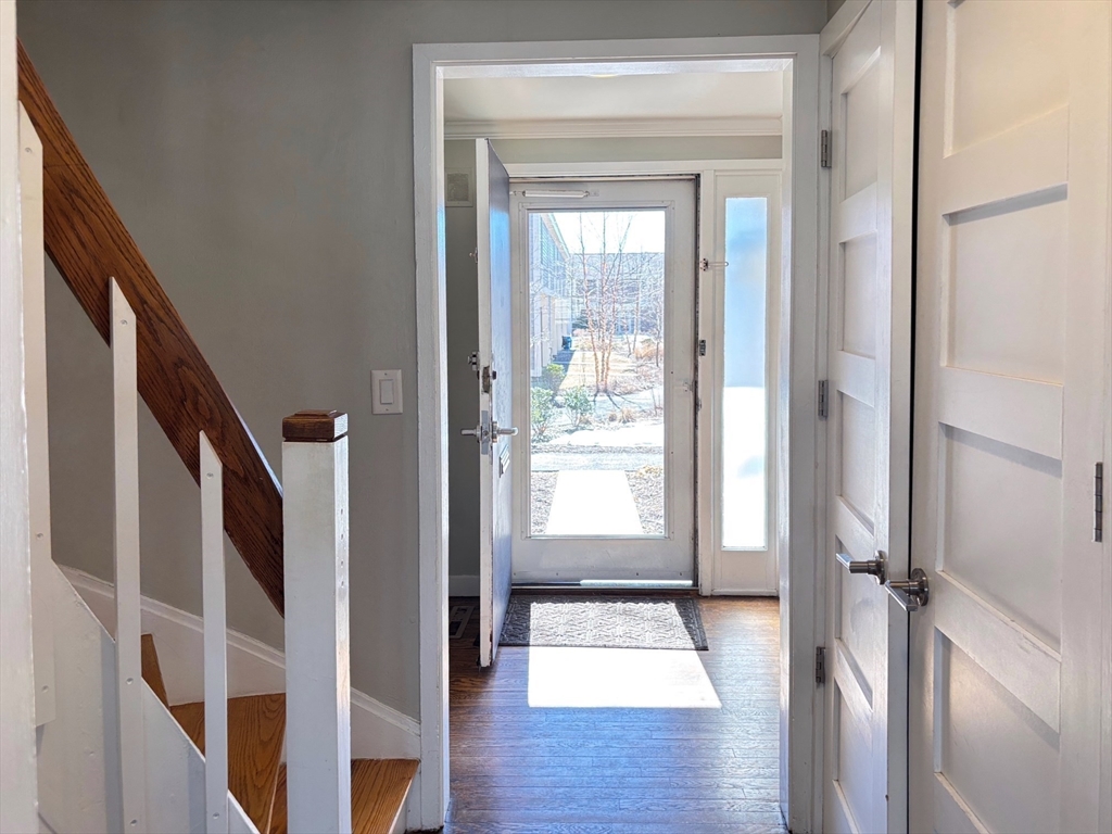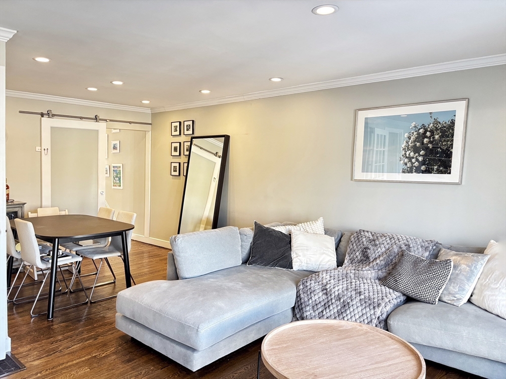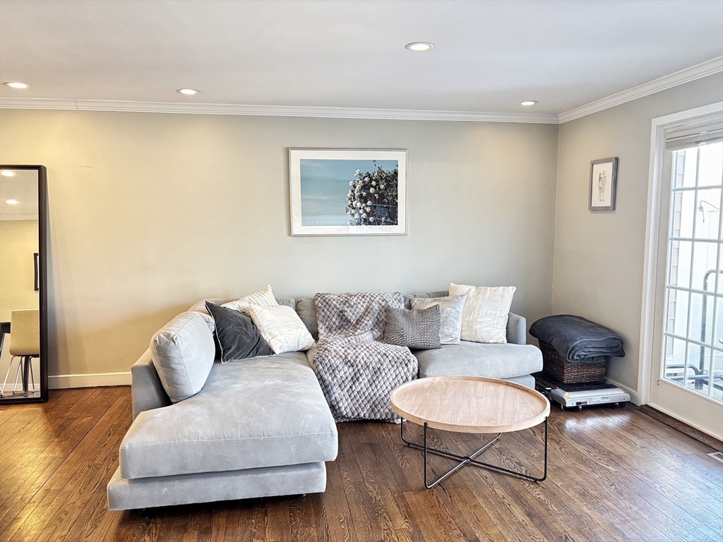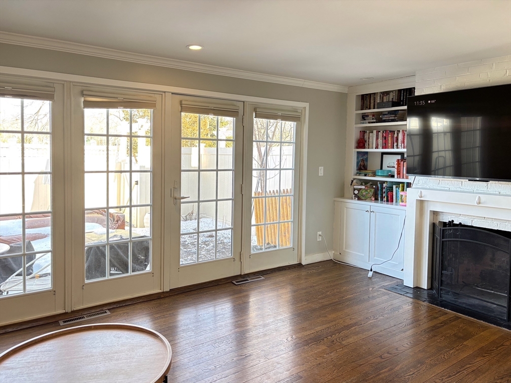 Wonderful opportunity to live in Wellesley's sought-after Linden Square townhome community! This location is steps from supermarket, Wellesley Center, restaurants, shops, commuter rail, tennis courts & highly-rated Wellesley Schools. With the conveniences of town living and the privacy of a garden community setting, this home delivers a quality lifestyle. Bathed in natural light, the living room is featured with gleaming hardwood floor, fireplace, built-in shelves, and a wall of French doors leading to fenced-in private blue stone patio. White kitchen with stainless steel appliances, opens to the dining/living area through a sliding door. Curved stairs leading to the two spacious bedrooms and a stunning full bath with new laundry on the 2nd floor. Additional features include large storage space in the attic, designated parking and ample guest parking spots, professional landscaping and management. Rare find in prime location.