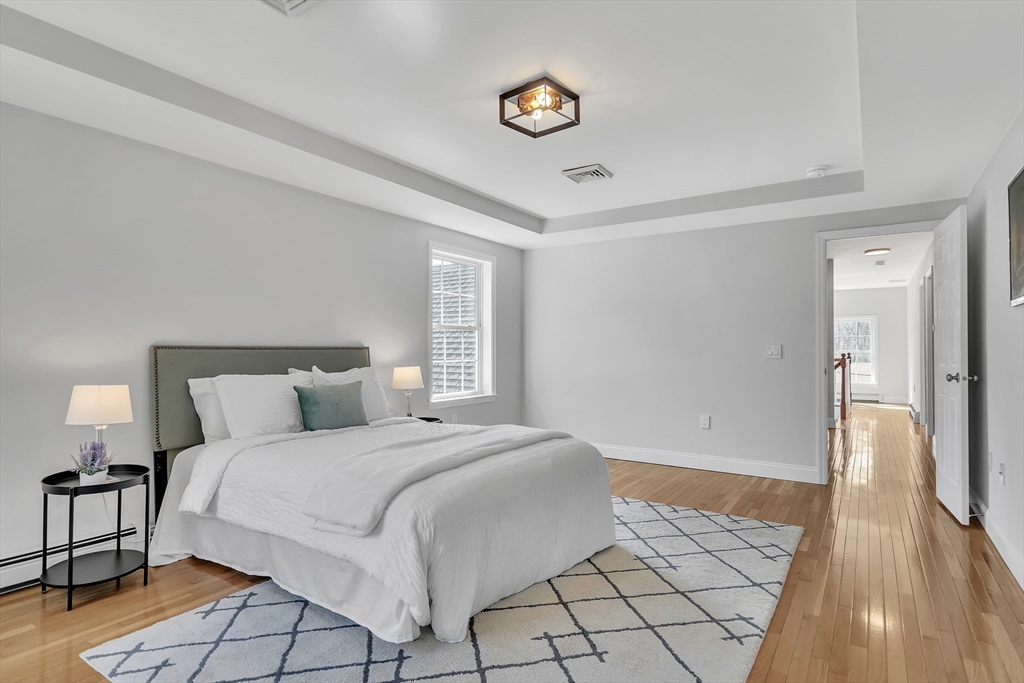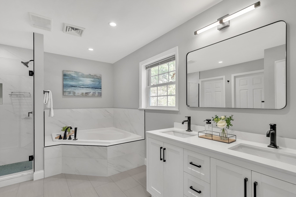Stunning, energy-efficient young Colonial in one of Burlington’s most desirable neighborhoods, offering bright and flexible living space. The main level features a chef’s kitchen, formal dining, spacious living room, private home office, first-floor laundry, and updated half bath, perfect for everyday living and entertaining. Upstairs, the main suite includes a spa-inspired bath and walk-in closet, while three additional bedrooms share a renovated full bath, plus a finished third-floor bonus space ideal for a family room, playroom, gym, or media lounge. The partially finished basement adds versatile space for activities and workspace, offering expansion potential. Enjoy a Tesla solar system with Powerwall, providing lower electricity costs, EV-friendly living, backup power, and income from the MA SMART incentive program. Located near I-95/128, I-93, top schools, and Burlington Mall, this home combines modern comfort, flexible living, and sustainable efficiency in a convenient location.